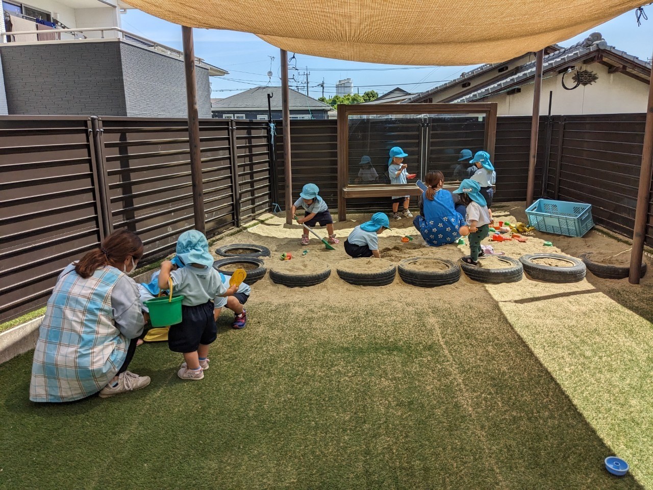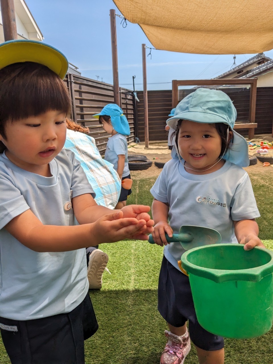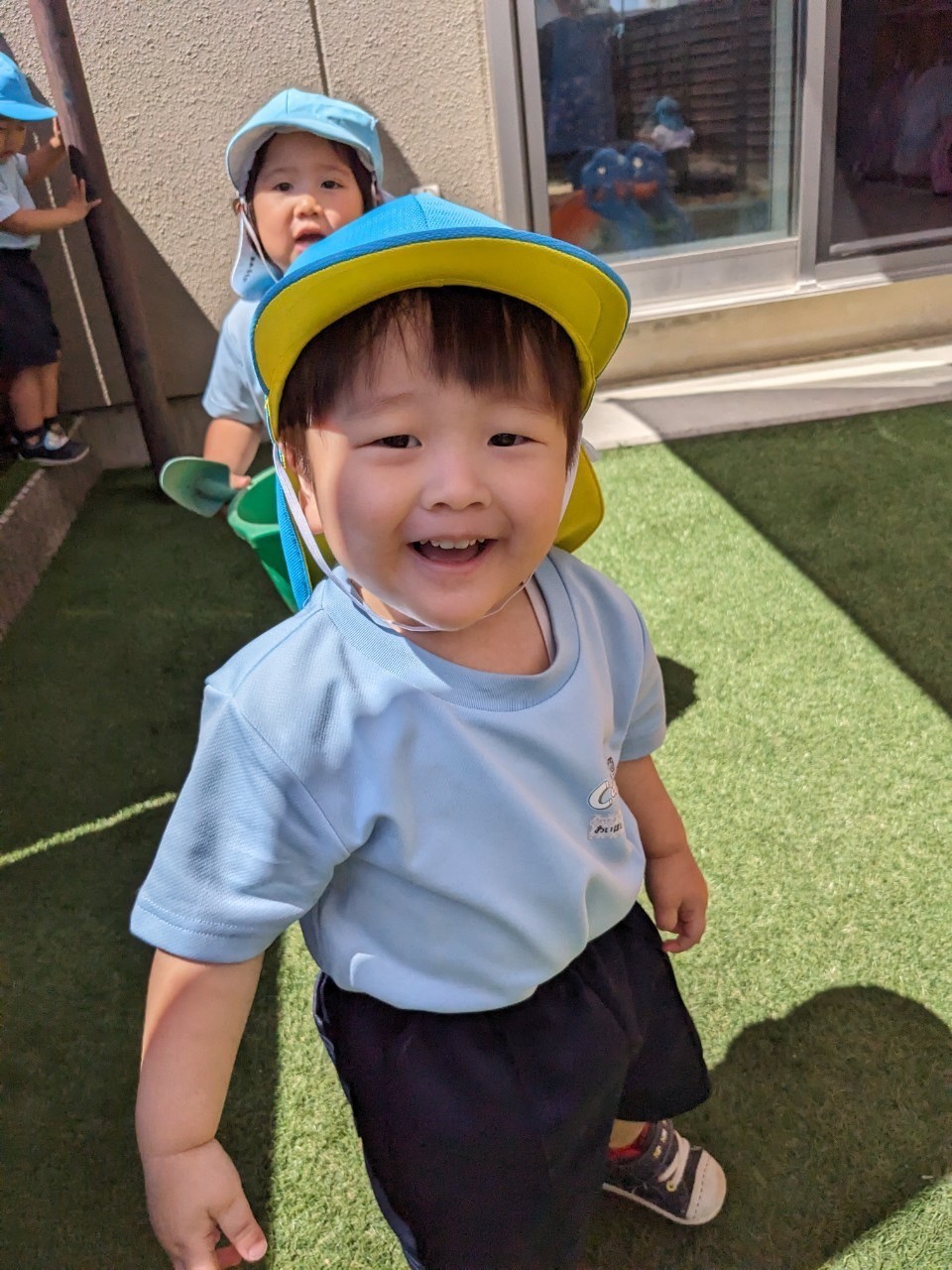 絵本の読み聞かせとダンスを十分楽しんだ後園庭に出ました🌞