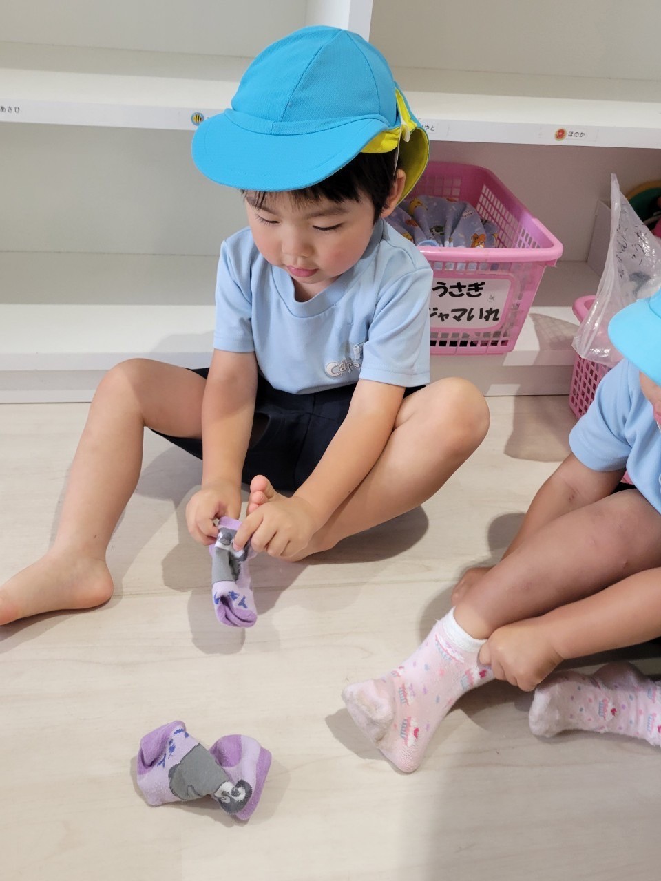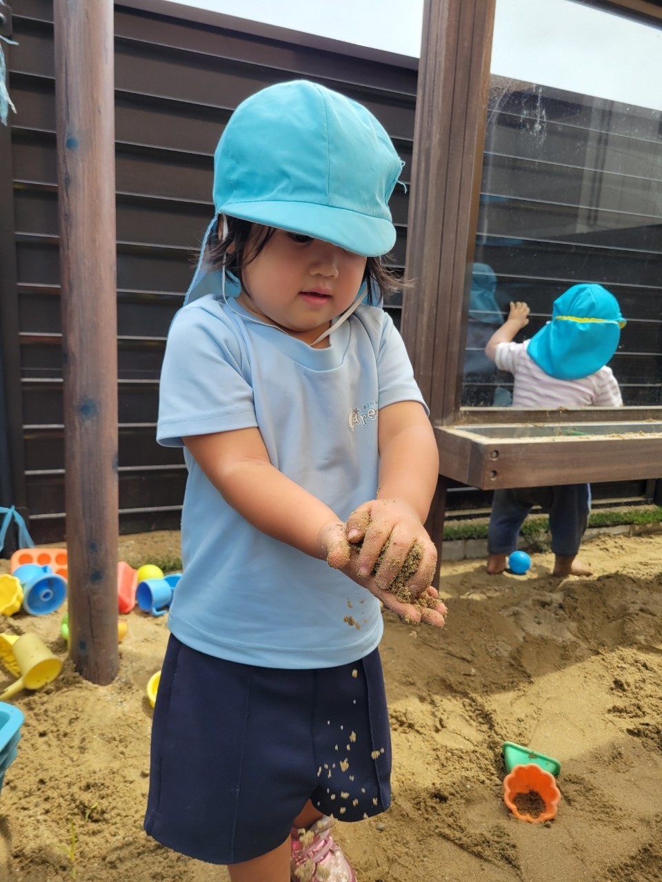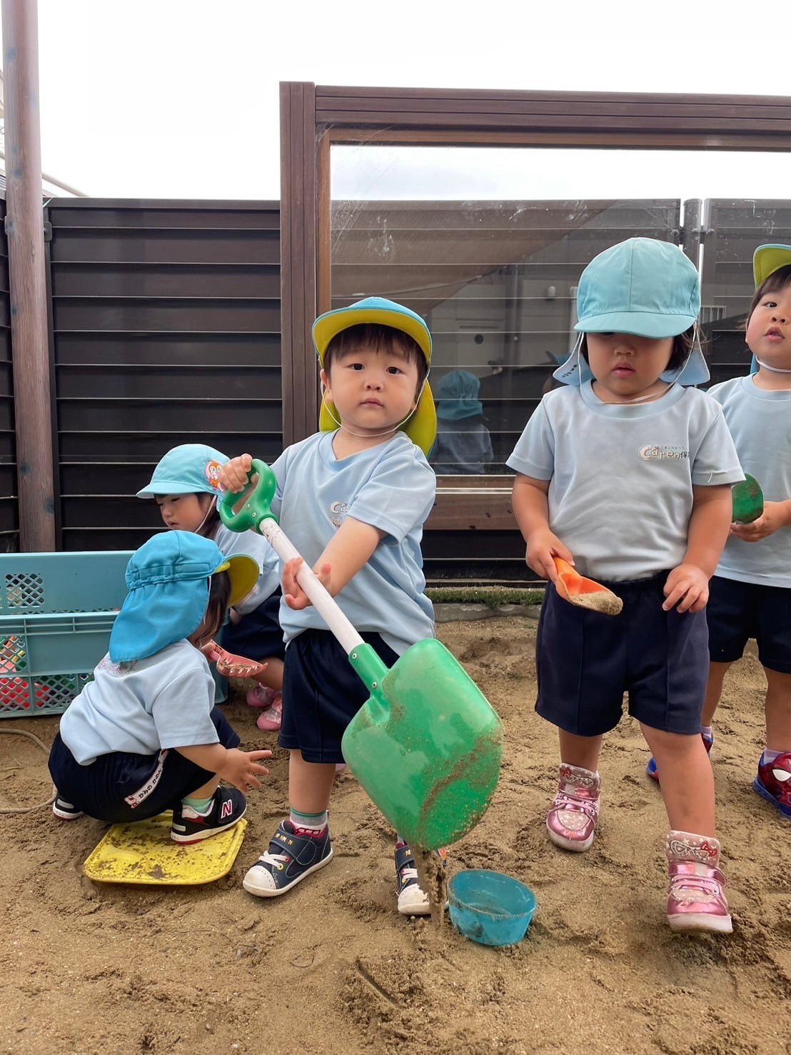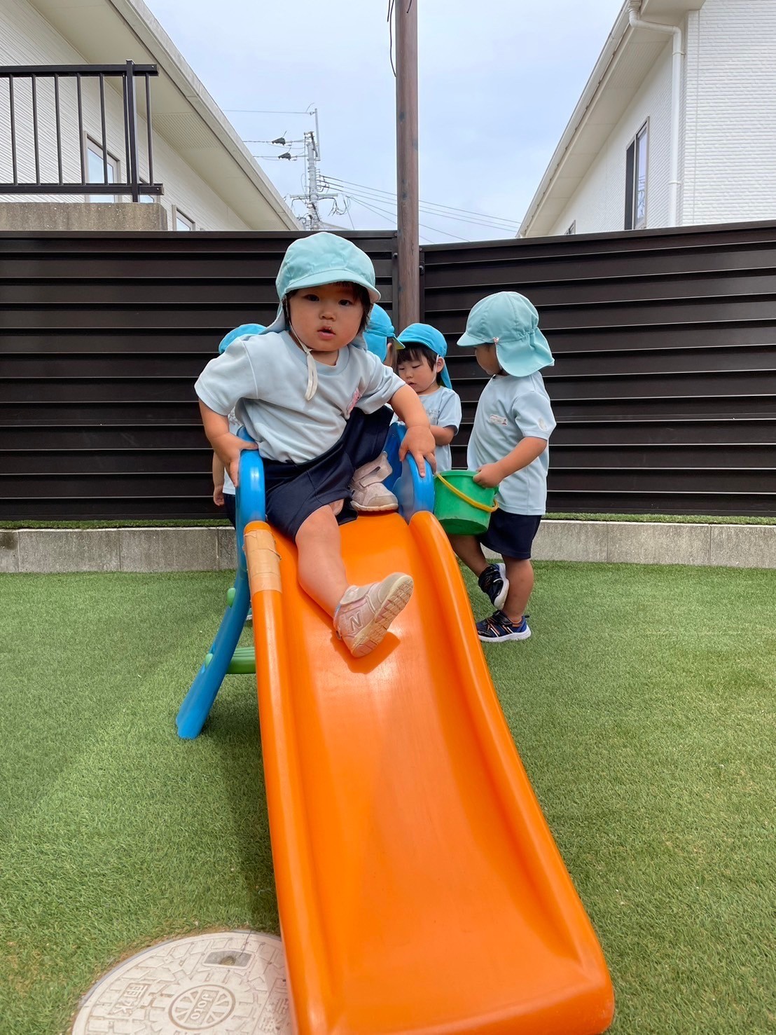 ダンゴムシを見つけたり、滑り台を滑ったり、雨混じりの湿った土で砂遊びもしましたよ😊異年齢交流でとっても楽しい時間でした🩷水分補給にも気をつけながら1日過ごしました✨明日も元気にきてくださいね🩷