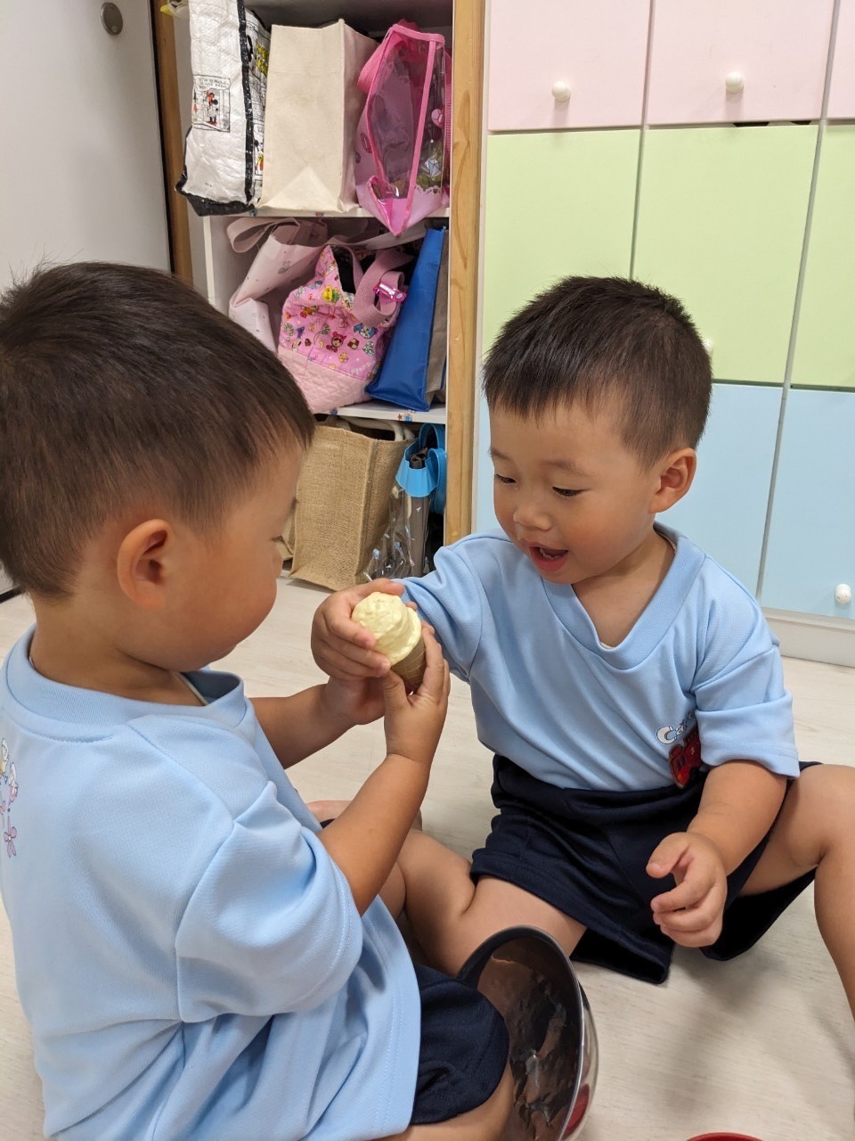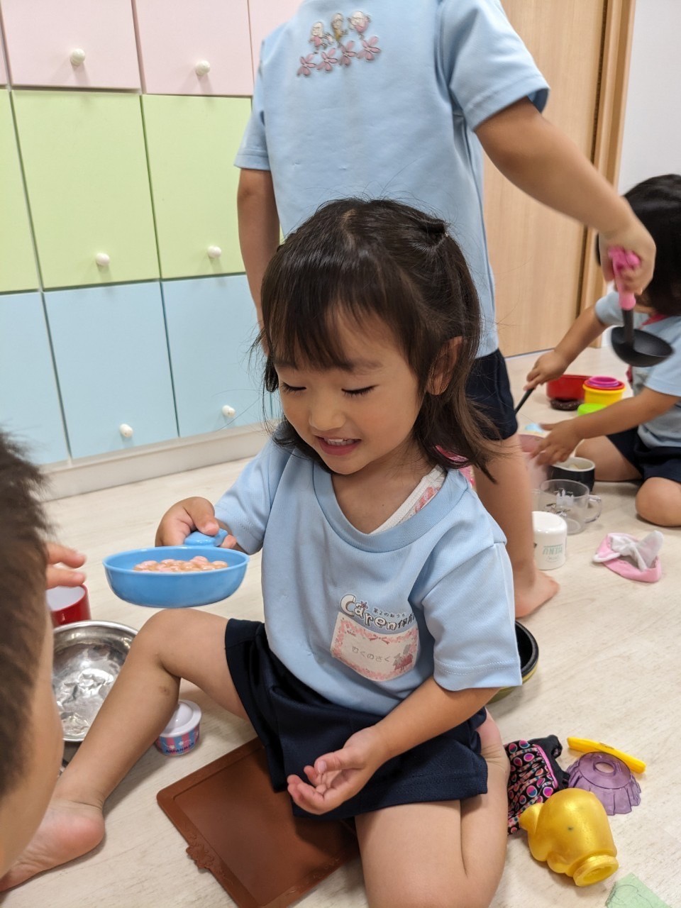 ままごと遊びでは、お友だちとのコミュニケーションを積極的にとる中でおもちゃの貸し借りや思いやりの心や言葉についてもみんなで学びながら過ごしています🌟【うさぎ、こあら、きりんぐみ】