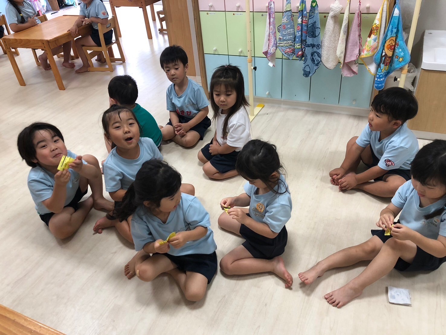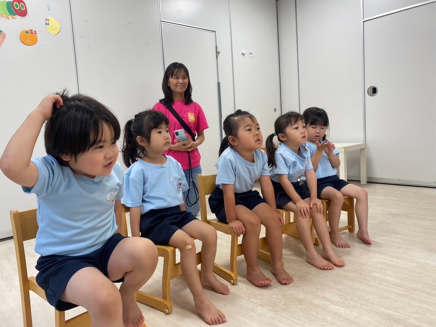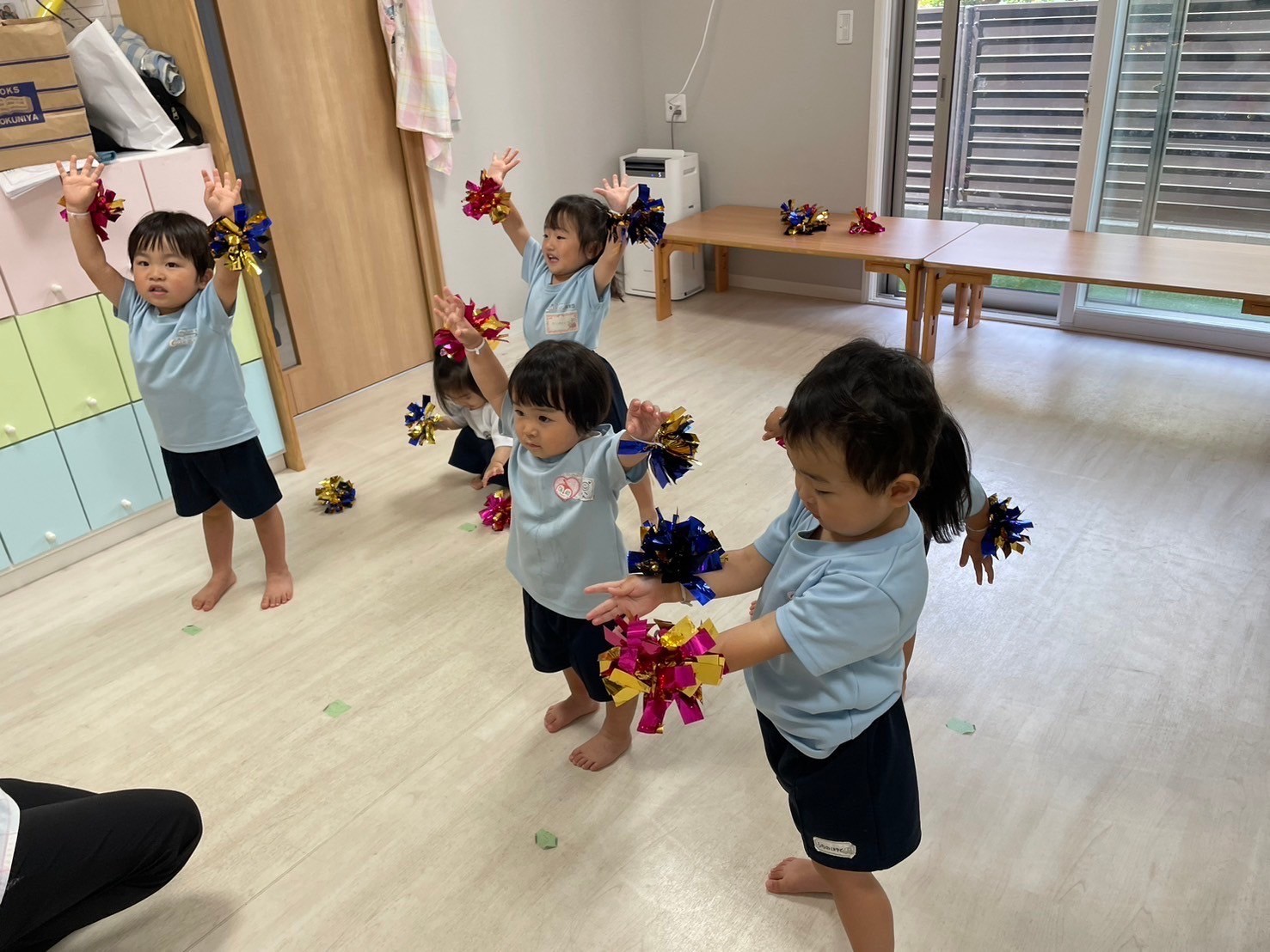 今日は英語レッスンday😄💖朝の会の歌も可愛く動きながら楽しむ姿が見られていましたよ🕺運動会練習のダンスでは、初めて飾りをつけて踊れることを喜んでいて、動きを覚えて積極的に踊る姿見られました😍まだ踊りたいと意欲的な声も聞かれましたよ🌟