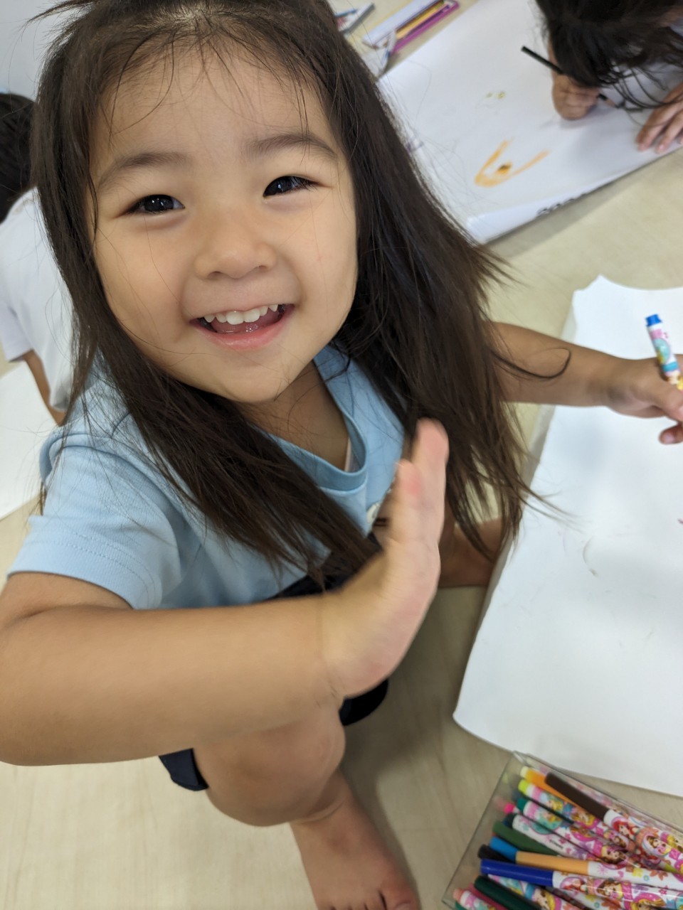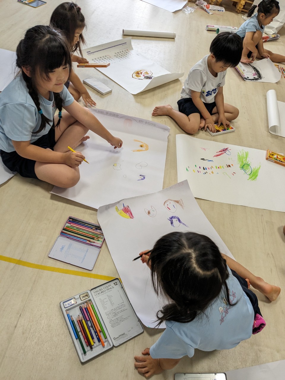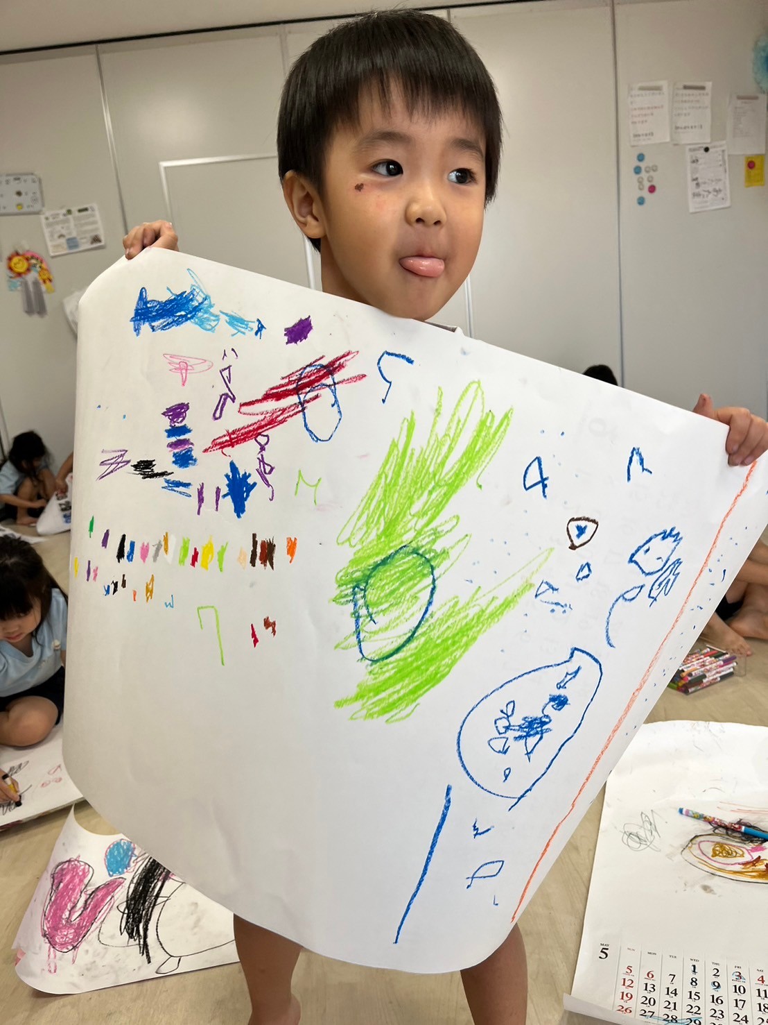 そのあとは、大きな紙にクレヨンや色鉛筆で自由にお絵かき😆