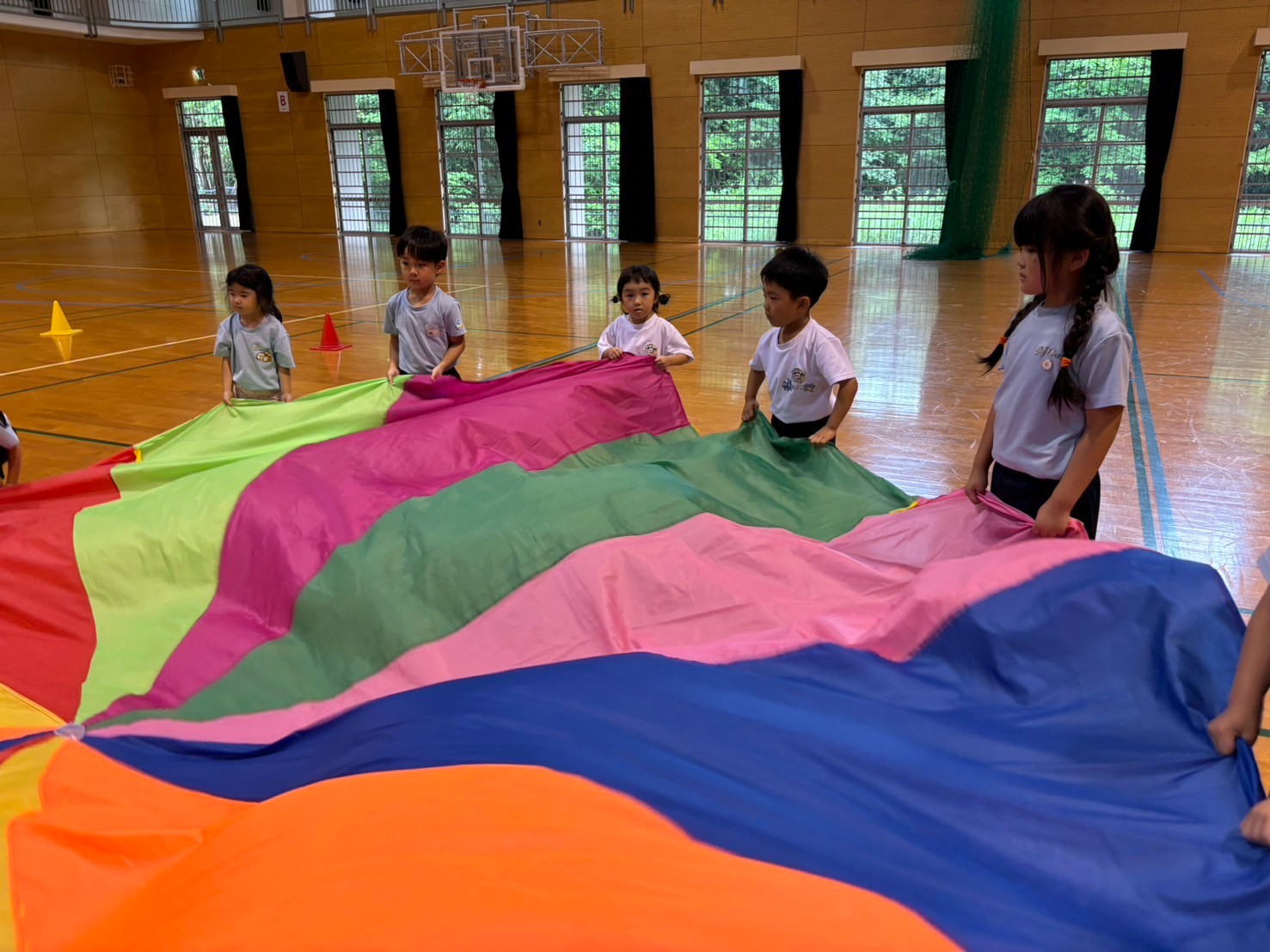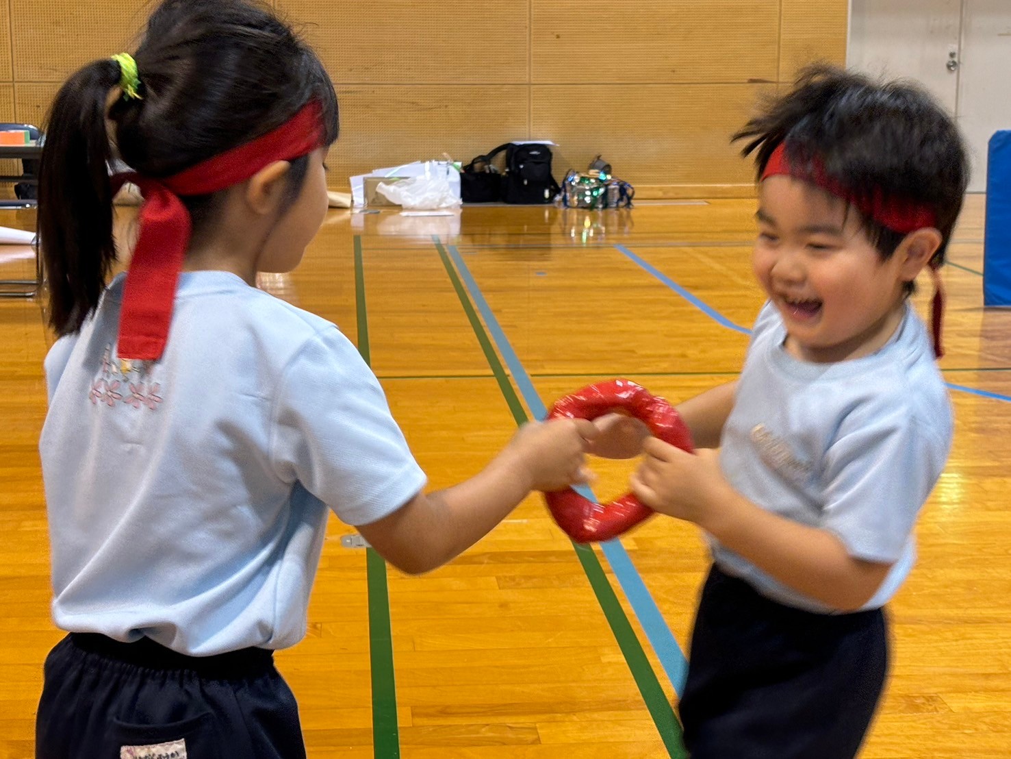 運動会リハーサルの為、クロスパル古賀に行ってきました⭐️くりえいと園のお友達と合同練習ができ、踊りやリレーなど本番と同じ雰囲気で行え緊張も吹き飛んだようです😆おにぎりも嬉しかったようで「ウインナー入れてきたよ‼️」「しゃけおにぎりにしたんだ〜🩷」など、笑顔と共に会話も弾みました🍙最後には広い広い体育館でかけっこをしたりモップをかけたりと、体育館を出るまで遊び尽くしました😂