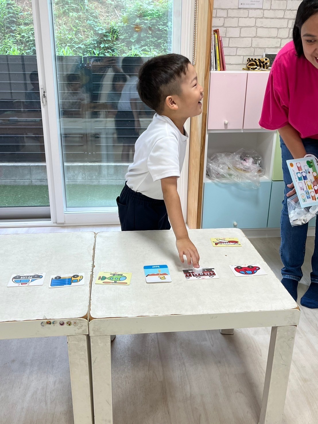 今日は英語レッスンがありました♪乗り物カードも慣れてきて、とてもスムーズでしたよ♥️朝の会で先生が質問する「 How’s the weather?」にも「It’s cloudy!」と元気に返せるようにもなり、英語が身近になってきたかな⁉️なんて感じています😆