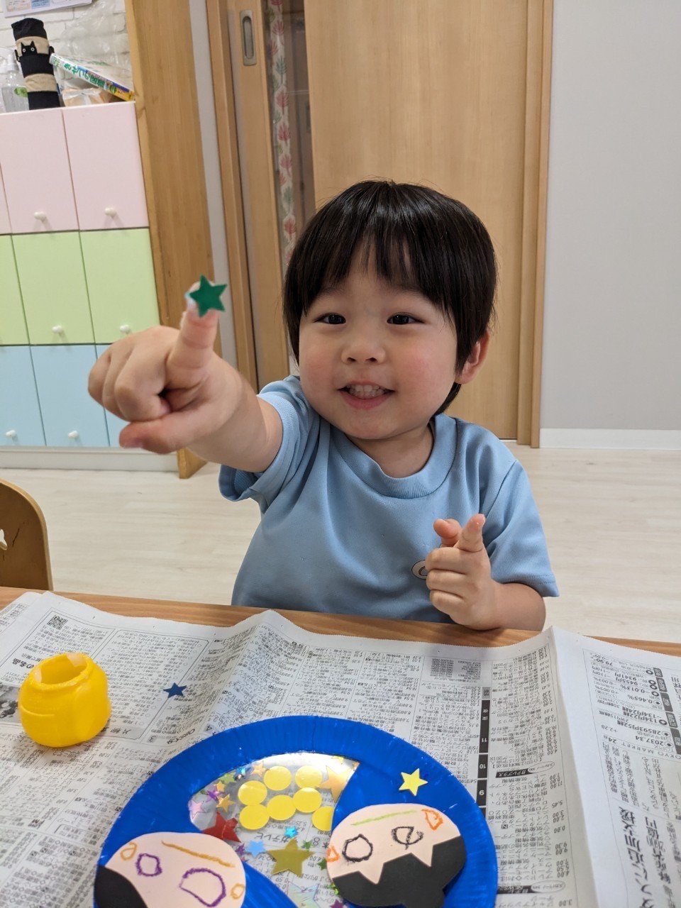 その後、七夕飾りを作りました🎋いくつかの見本を見て、毎回驚いてくれる子ども達😂ハサミ、のり、クレパスを使って上手に作り、笹に飾るのをとても楽しみにしているようです✨最後に運動会の練習をしたり、獣王ジャーのおもちゃやメルちゃんなどで遊び、あっという間に午前中がおわりました🌟週末の運動会は全員参加できるよう、体調を整えていきたいと思います☺️