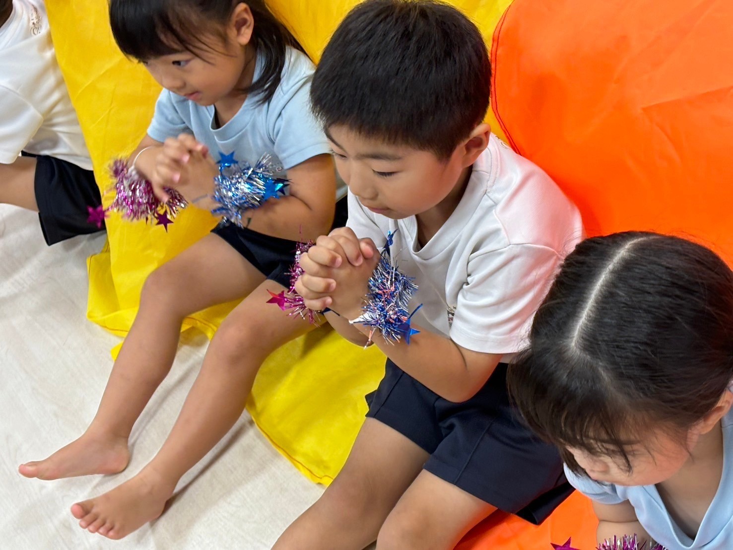 今日は運動会まで残り2日ということで、開会式から通しての練習を行いました🌟本番通りに衣装を着たり、腕輪をつけたりの練習に気合も入っていて最後まで力を抜くことなく頑張っていましたよ💖