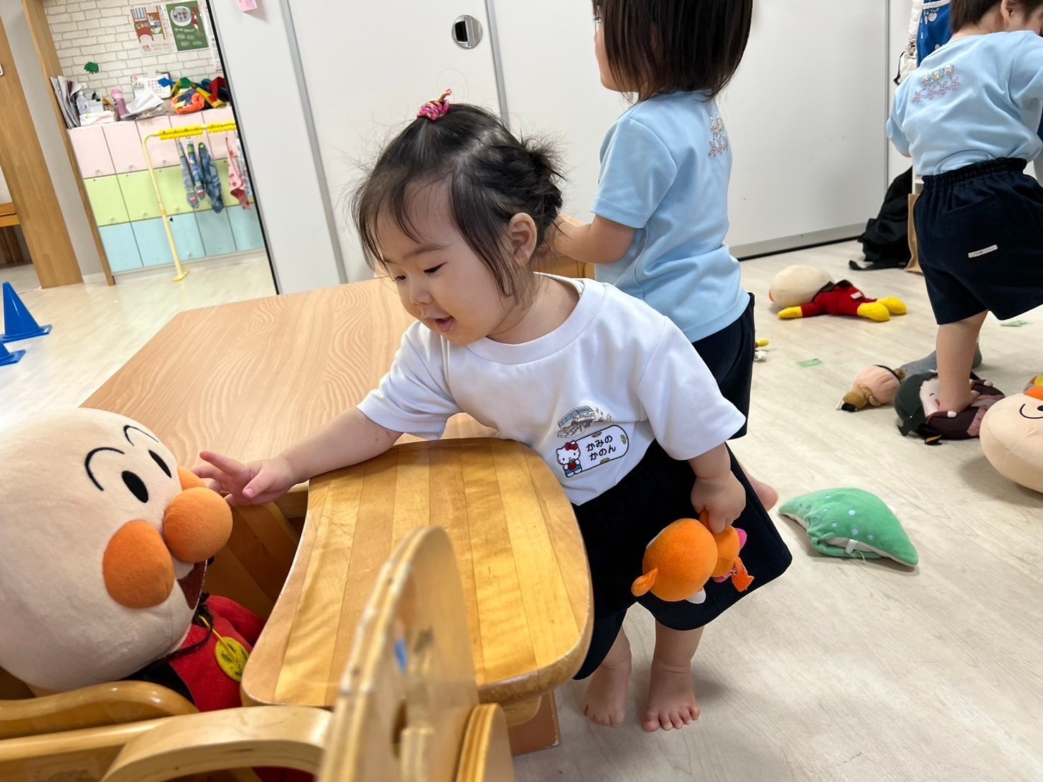 室内ではみんなが大好きなぬいぐるみで遊びました😊お友達同士でごっこ遊びをしたり指人形で可愛くご挨拶をしたりと楽しく過ごすことができました🥰