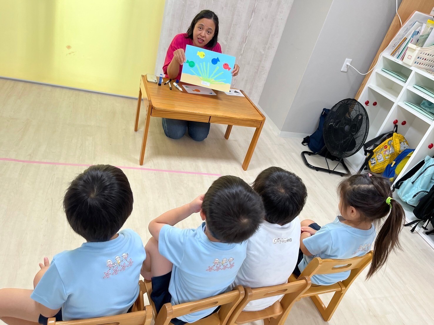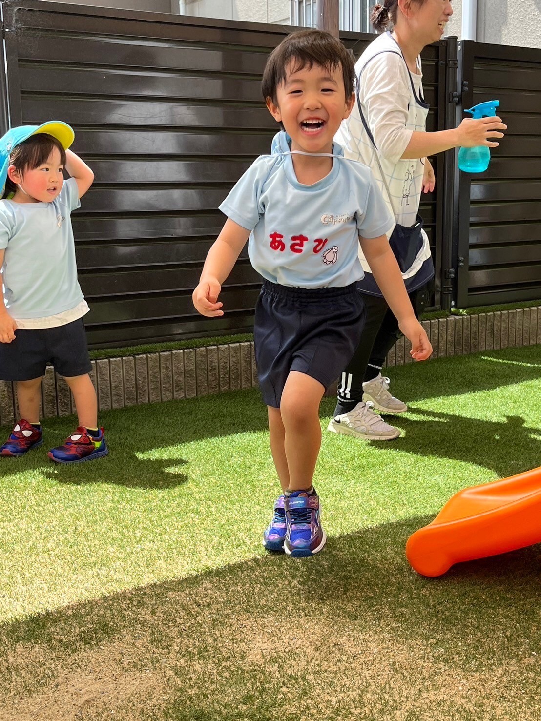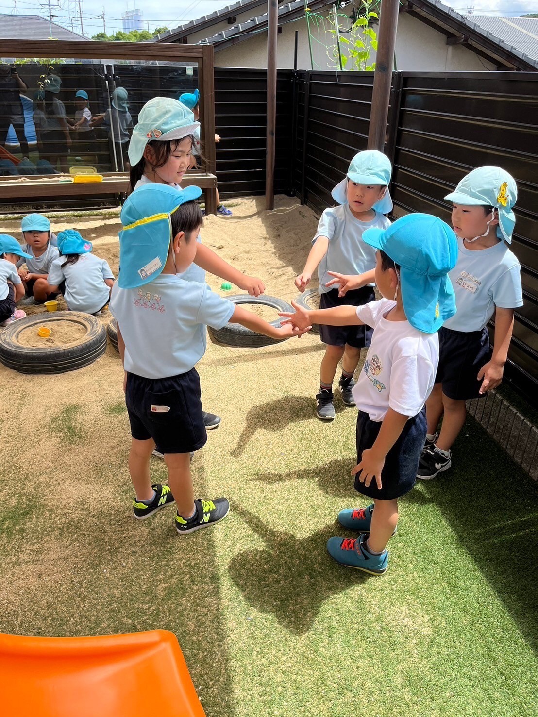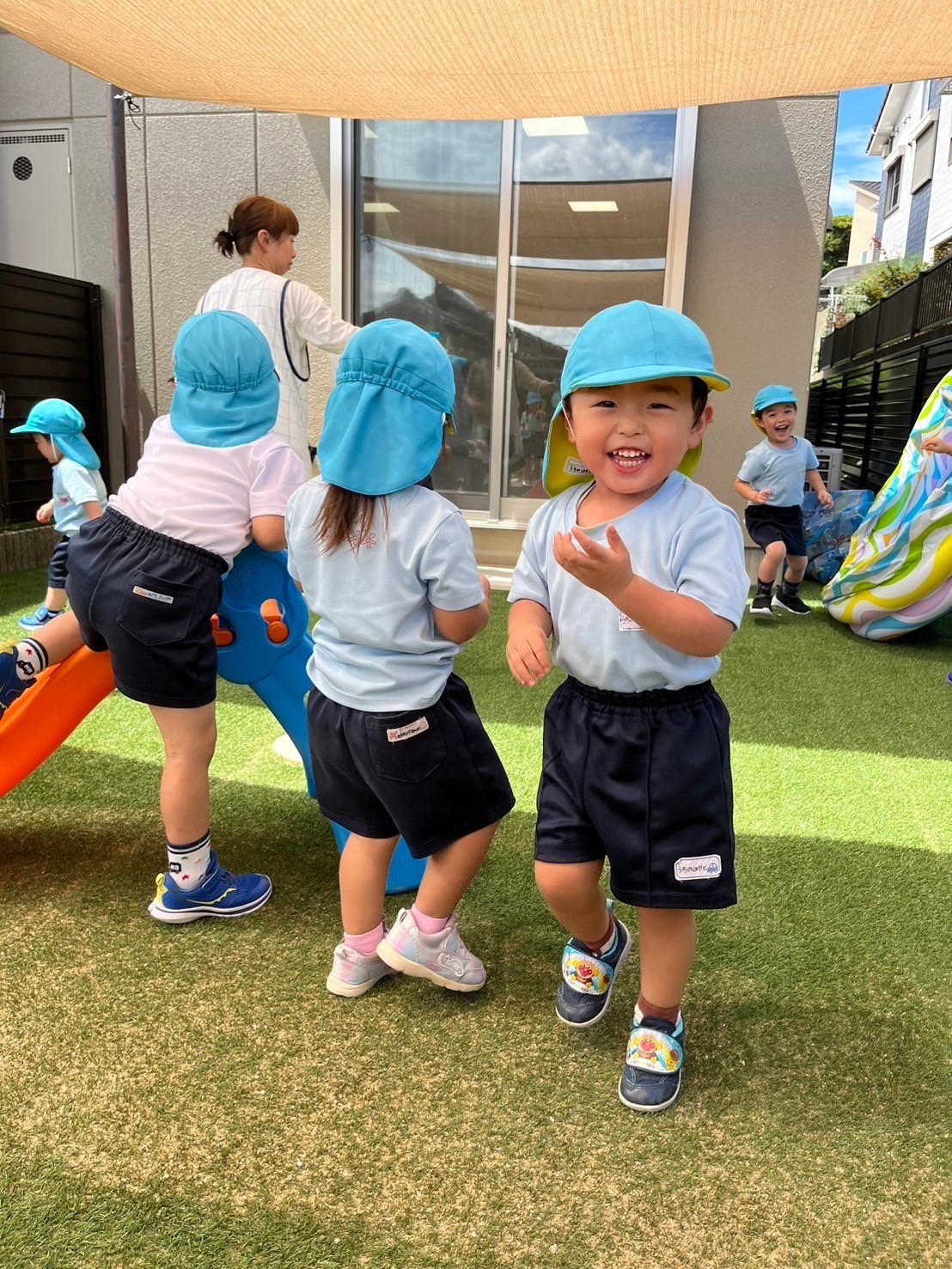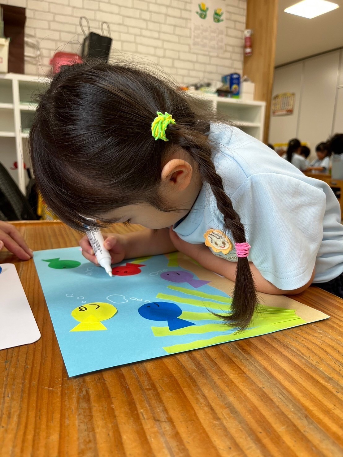 今日は英語レッスンの日、みんなで色と形を言いながら可愛い魚を作りました🐠🩷待ち時間にはLaQをしたり、製作の続きで魚の貼り付けと周りに海の生き物を描きました‼️みんな画伯でよく想像しながら描く事ができていましたよ😊うさぎさんの製作は花火です🎇思い思いに打ち上げて個性あふれる作品になりました😍最後には、園庭で霧吹きのシャワーや扇風機で冷気を送り込むなど対策しながら短時間だけ遊びました🤗暑さに負けず、元気な子どもたちでした♪💖
