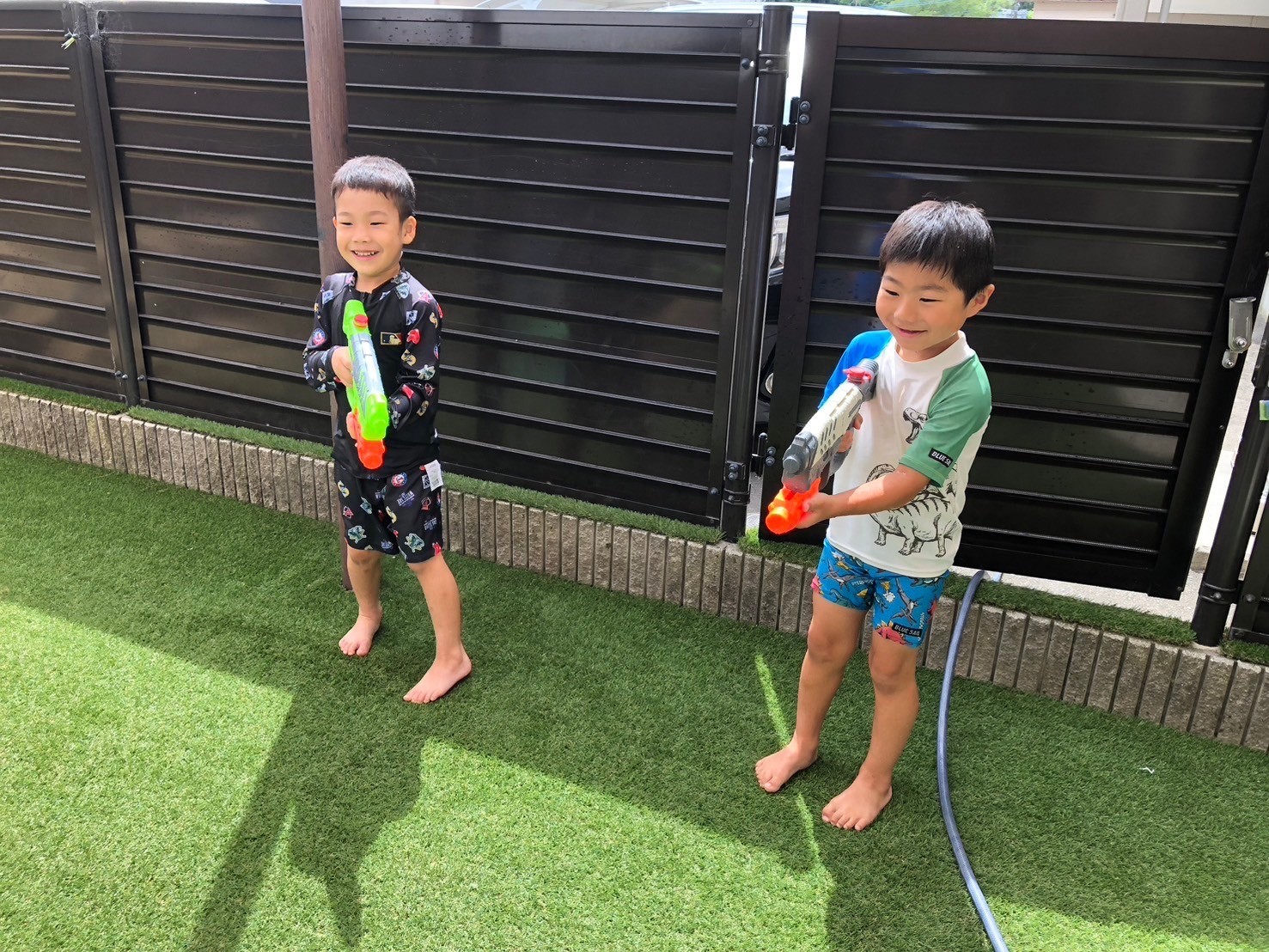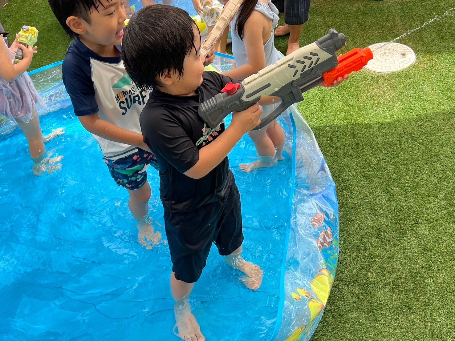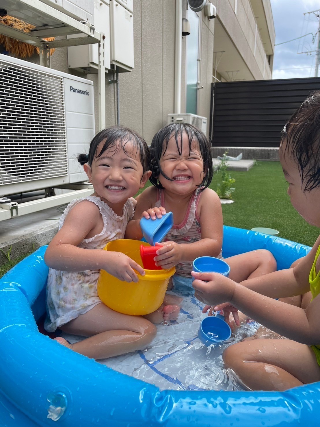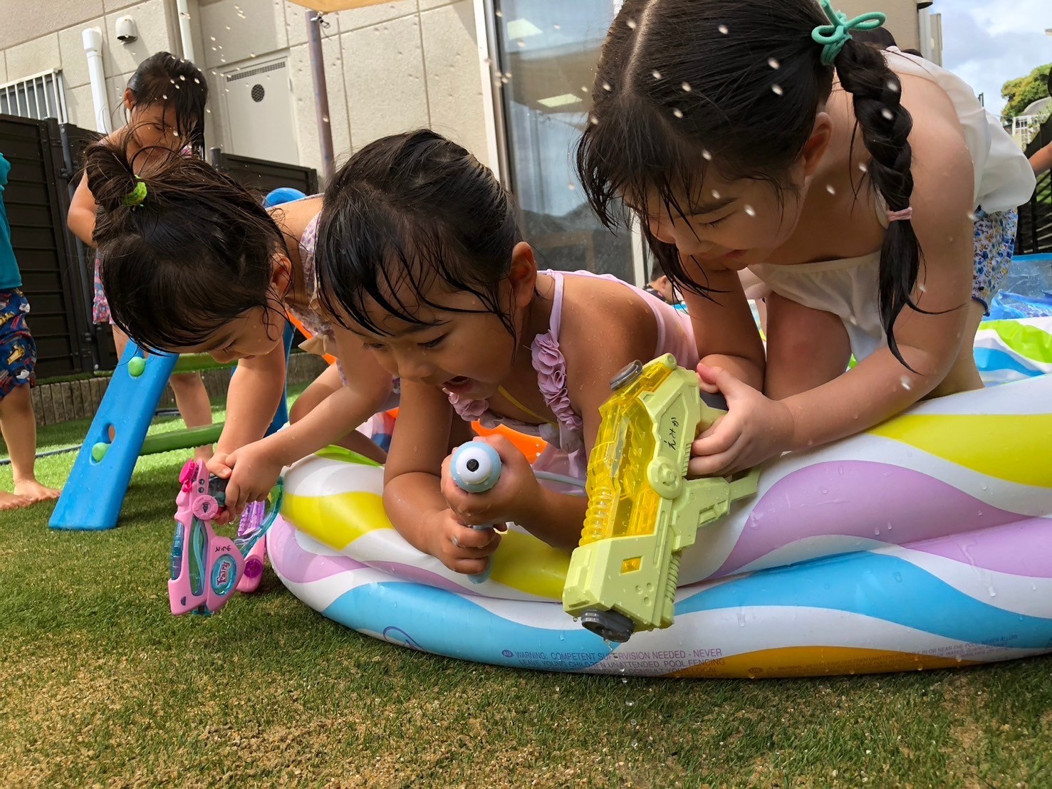 今日は水遊びの前にまずは、夏祭りで作るものについてみんなで意見出し合いました❗️かき氷にりんご飴、焼きそばにポテトなど様々な意見が飛び交いましたよ😆💕それから水遊び☺️🌈約束事の確認をすると、「先生の携帯に水かけな〜い!」と優しい心づかいの発言もあり、笑いました🤣💖みんなでルールを守りながら楽しく遊べました😊見学のお友だちもブロックで仲良く遊びました🤗
