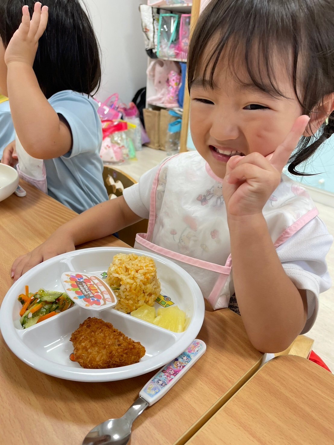 給食ももりもり食べていましたよ😋