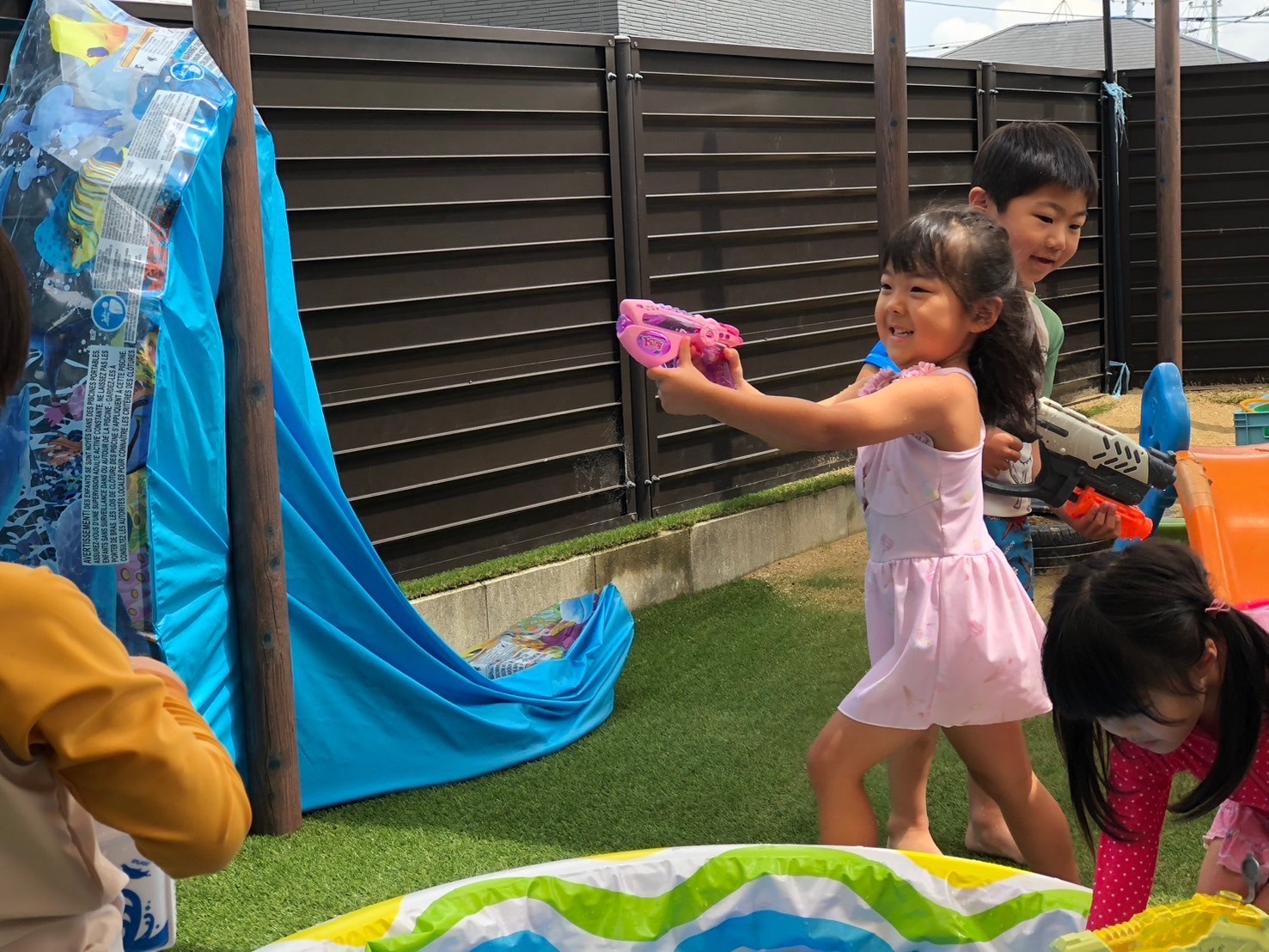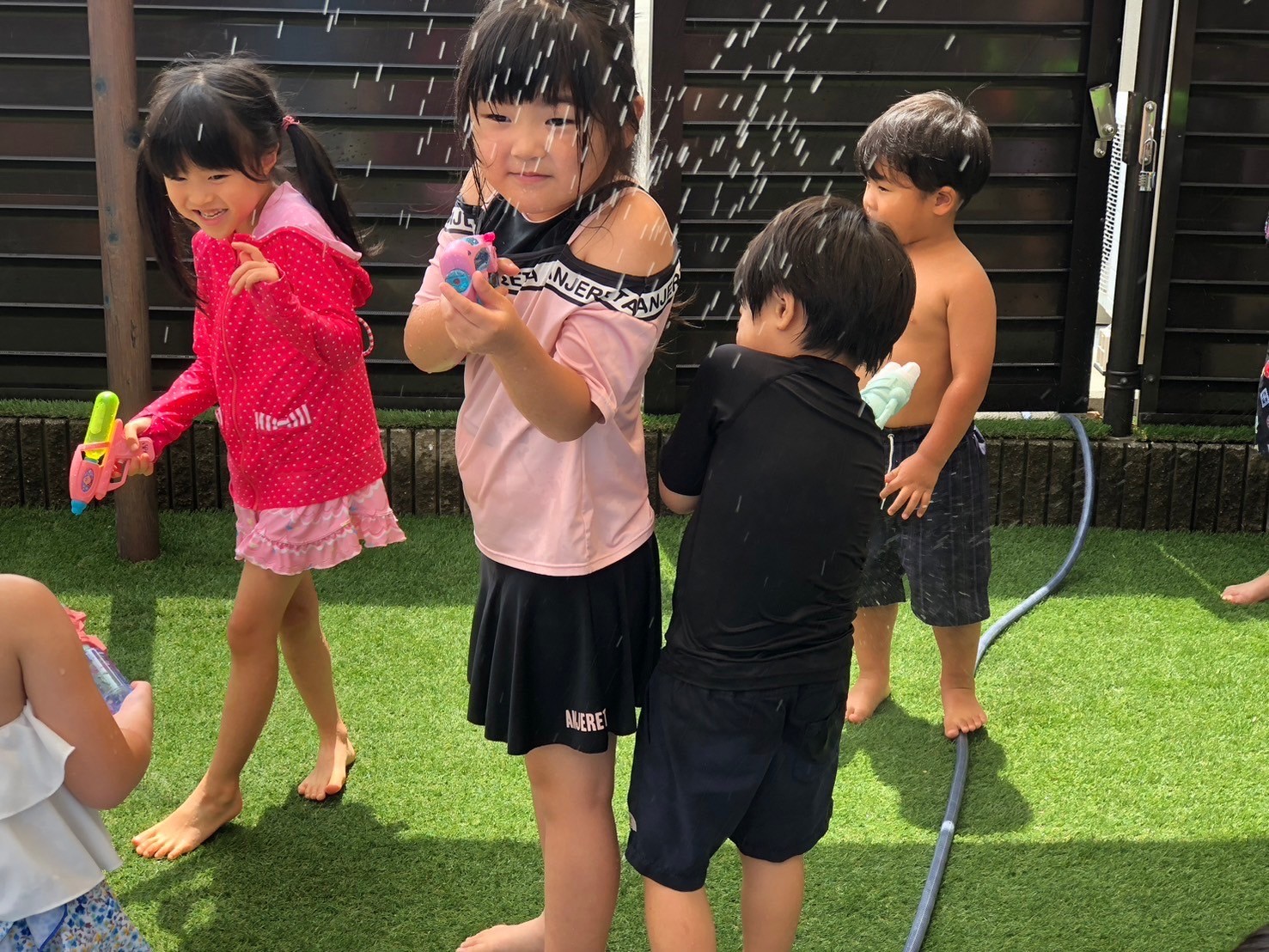 誕生会の後は水遊び💦水鉄砲の使い方も上手になって、掛け合いを楽しんでいましたよ😊