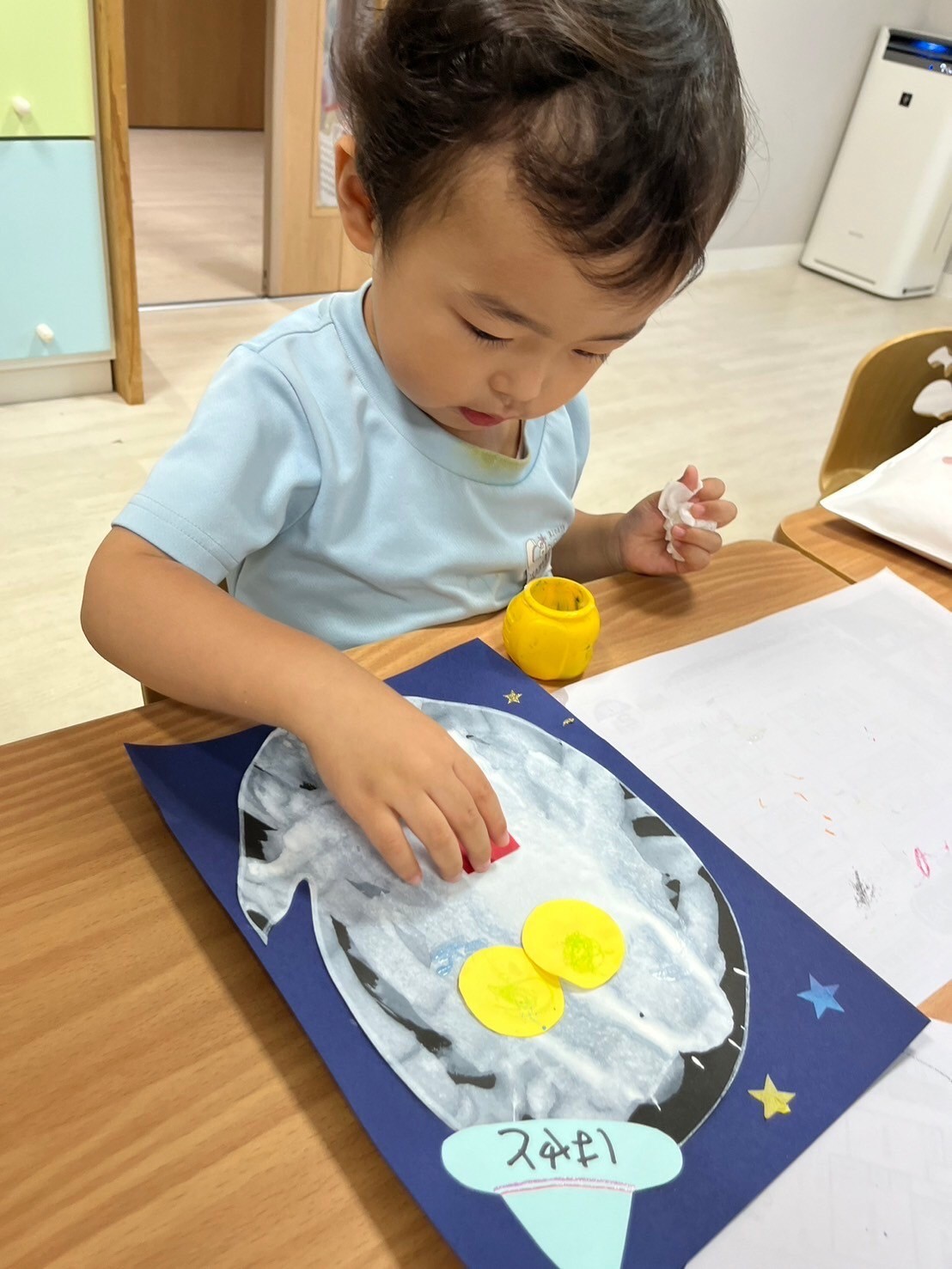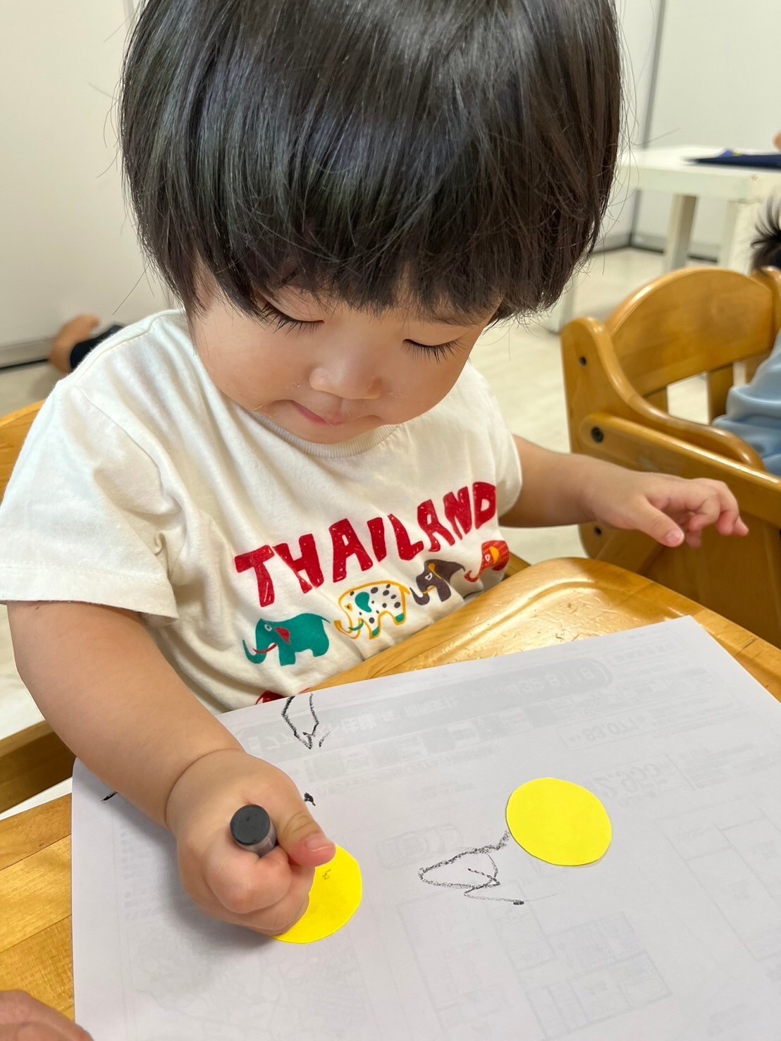 その後は月の製作の仕上げをしました🌟👻りす組さんもクレヨンをしっかりと握り模様が描けていましたよ😍