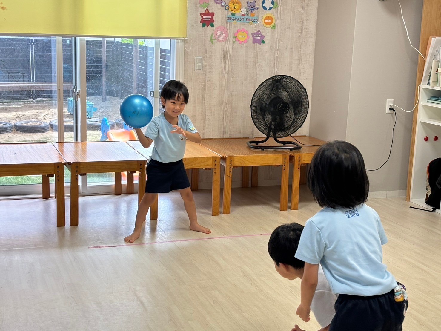 今日は絵本の先生からの読み聞かせの後、みんなのリクエストで爆弾ゲームをしました❗️逃げるのもとっても上手になってきているので、ボールに当たった人が外に出て投げる役、当てた人は中に入れるというように交代していきながら自分たちで進めていきました🌟審判役も登場し、ルールに慣れていくにつれて盛り上がっていきましたよ🤗爆弾ゲームのあとは、塗り絵チームと園庭チームに分かれて遊びました💖