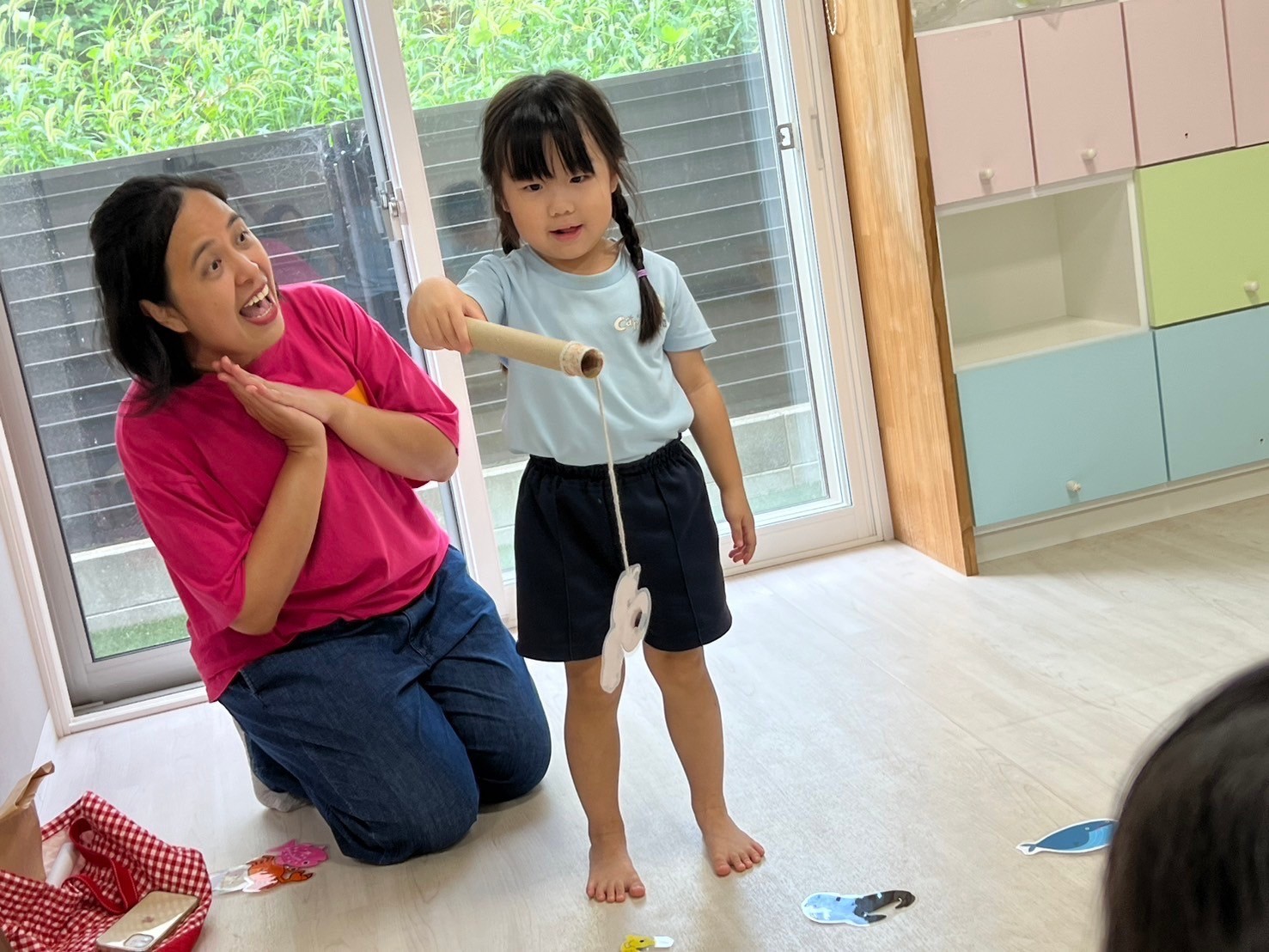 英語レッスンでは意欲的に発音良く発語する姿に成長が感じられました🌟釣りゲーム🐟にもとっても意欲的でしたよ😆最後には「楽しかったー😍」と話すかわいい子どもたちでした💕トミカ遊びも滑り台を使いながら繰り返し走らせて遊んで楽しんでいましたよ🚗🎵【うさぎ、こあら、きりんぐみ】