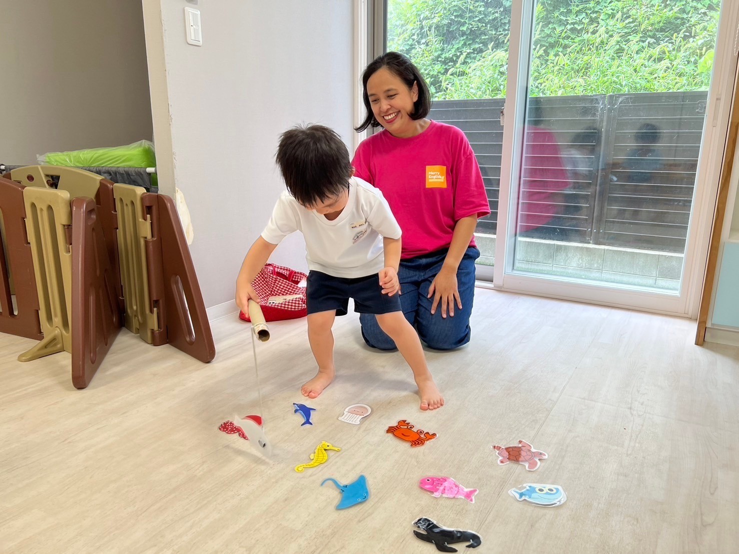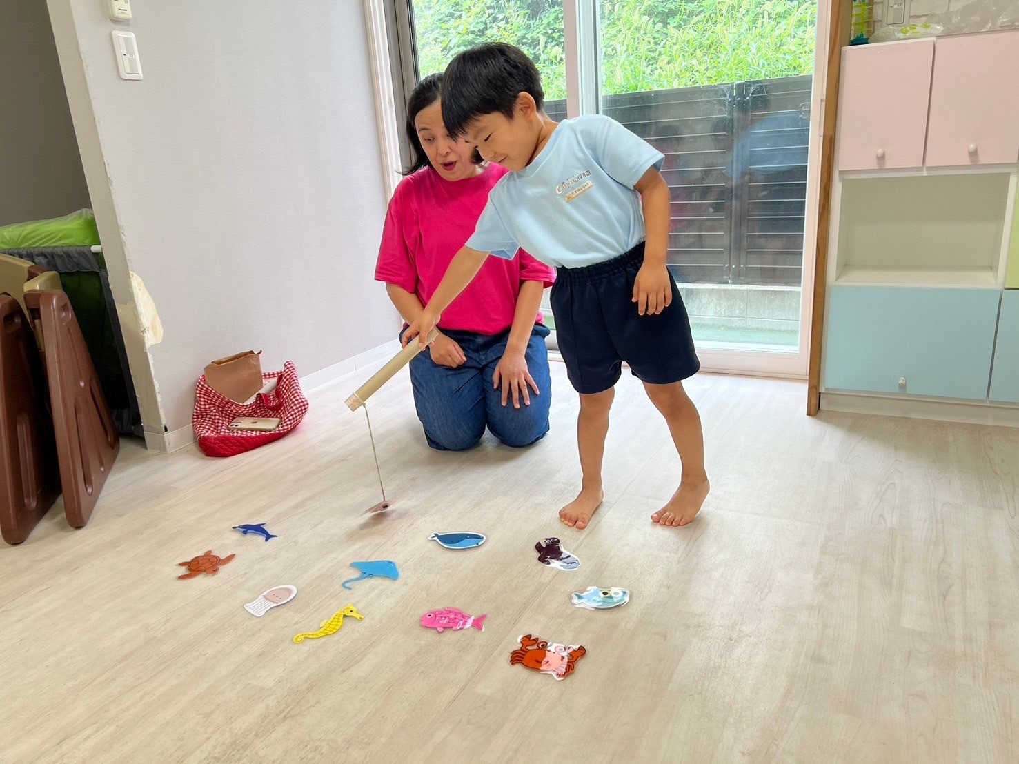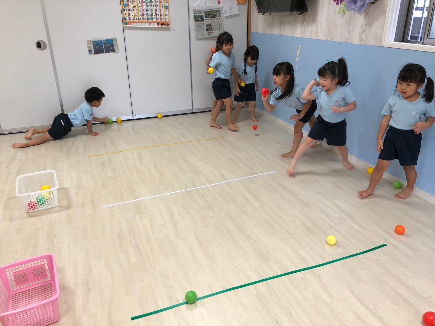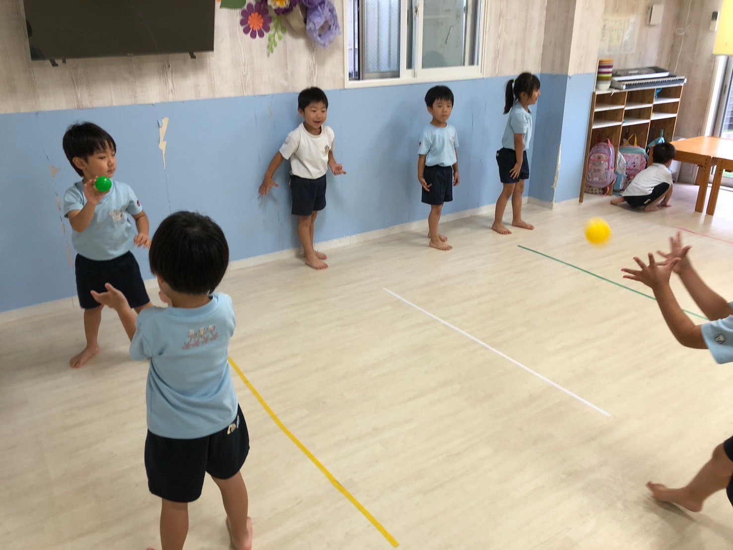 今日は英語レッスン、前回に引き続き海の生き物でした🤗最後には好きは海の生き物を釣り上げて満足気なみんなでした💖レッスンの待ち時間には、ボール遊び🌟まずは自分で上に投げてキャッチ、簡単な子は投げている間に手拍子してキャッチしてみたり、少しずつ距離を変えながら壁あてしてみたり、玉入れしてみたり、ボール送りをしてみたり、遊び方を色々と変えながら遊びました❗️お家でも危なくない場所を見つけてやってみてね💕と話しています✨最後には仲良くレゴブロックで遊びました🎶