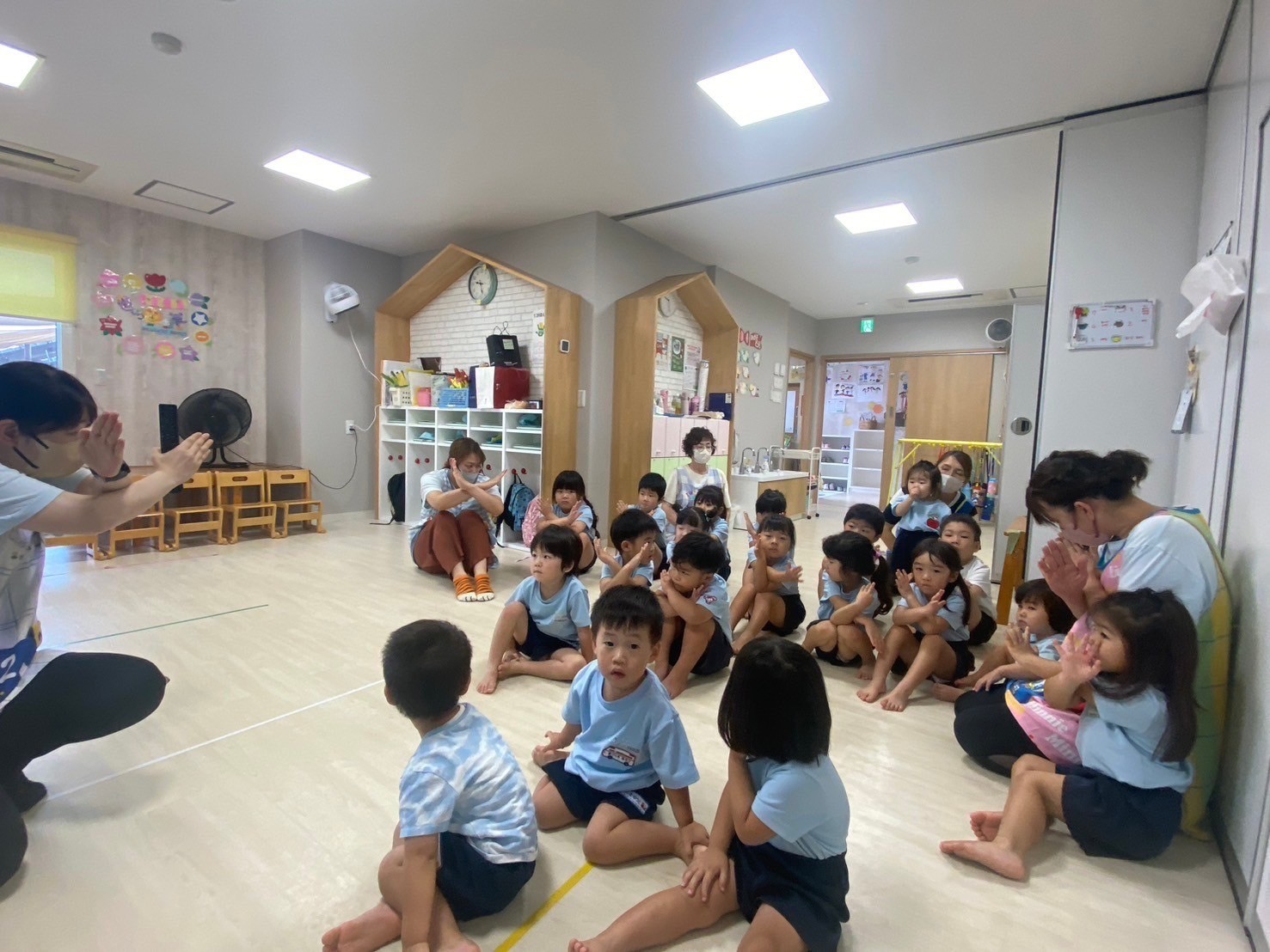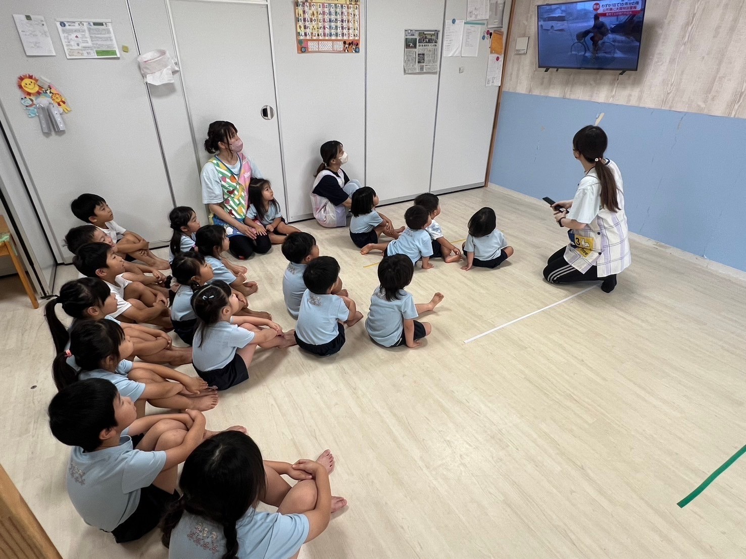 今日は7月最終日、まずはご褒美シール貼りをしました😊みんな1ヶ月間、よく頑張りました👏💖避難訓練では先日の山形の豪雨災害についての映像を見ながら大雨や水害についての場合の避難についてお話しをしました💦みんな映像をみて衝撃を受けながら真剣に話を聞いていましたよ❗️体操教室🤸鉄棒に挑戦しました❣️うさぎ組さんはブタさんやおさるさん、ツバメさんに変身したり、足抜き回りもやってみましたよ😄こあら組さんは足抜き回りはもう得意なもので、前回りや逆上がりもしましたよ👍きりん組さんはみんな感覚を忘れたりもしておらす、鉄棒を高さを上げての逆上がりしました🌟みんな最後にはマット怪獣や爆弾ゲームなどのご褒美タイがあり、最後まで笑顔で楽しんでいました🥰