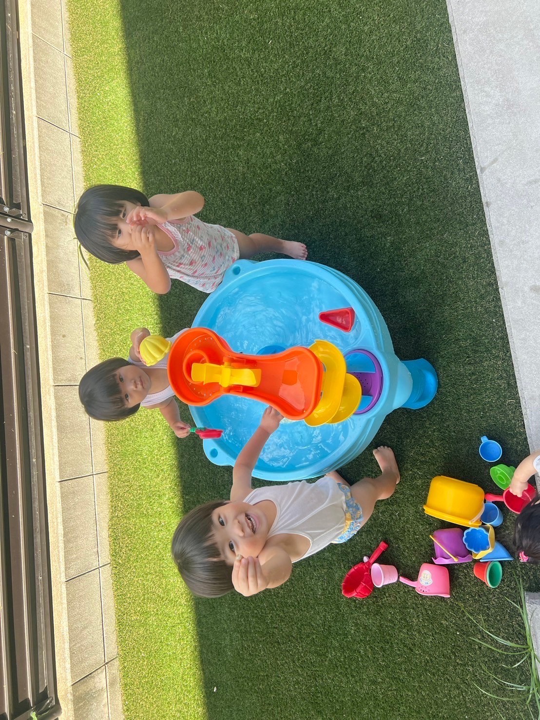貝殻を水に流して遊んだり、繰り返し水に触れて楽しんでいましたよ❣️