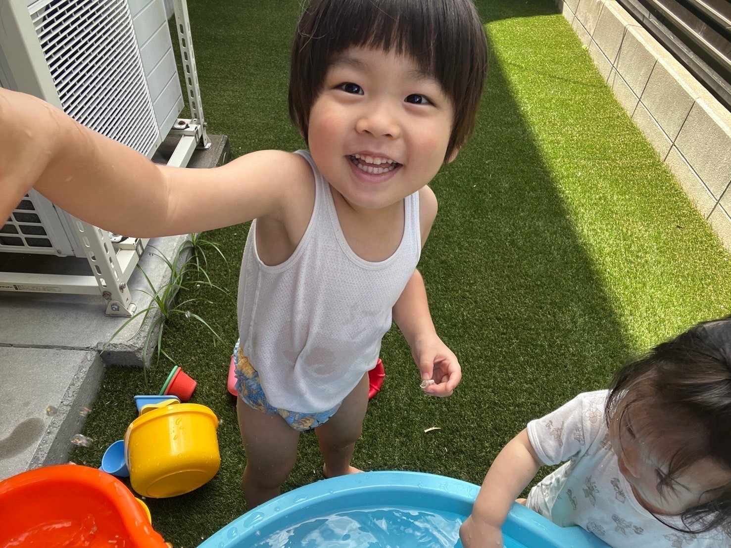 難訓練の日☆先日の山形の豪雨災害についての映像を見ながら大雨や水害についての場合の避難についてお話をしました💦約束事や大切なことのお話もきちんと聞いていましたよ❗️絵本の読み聞かせの後は楽しみにしていた水遊びTime🥰