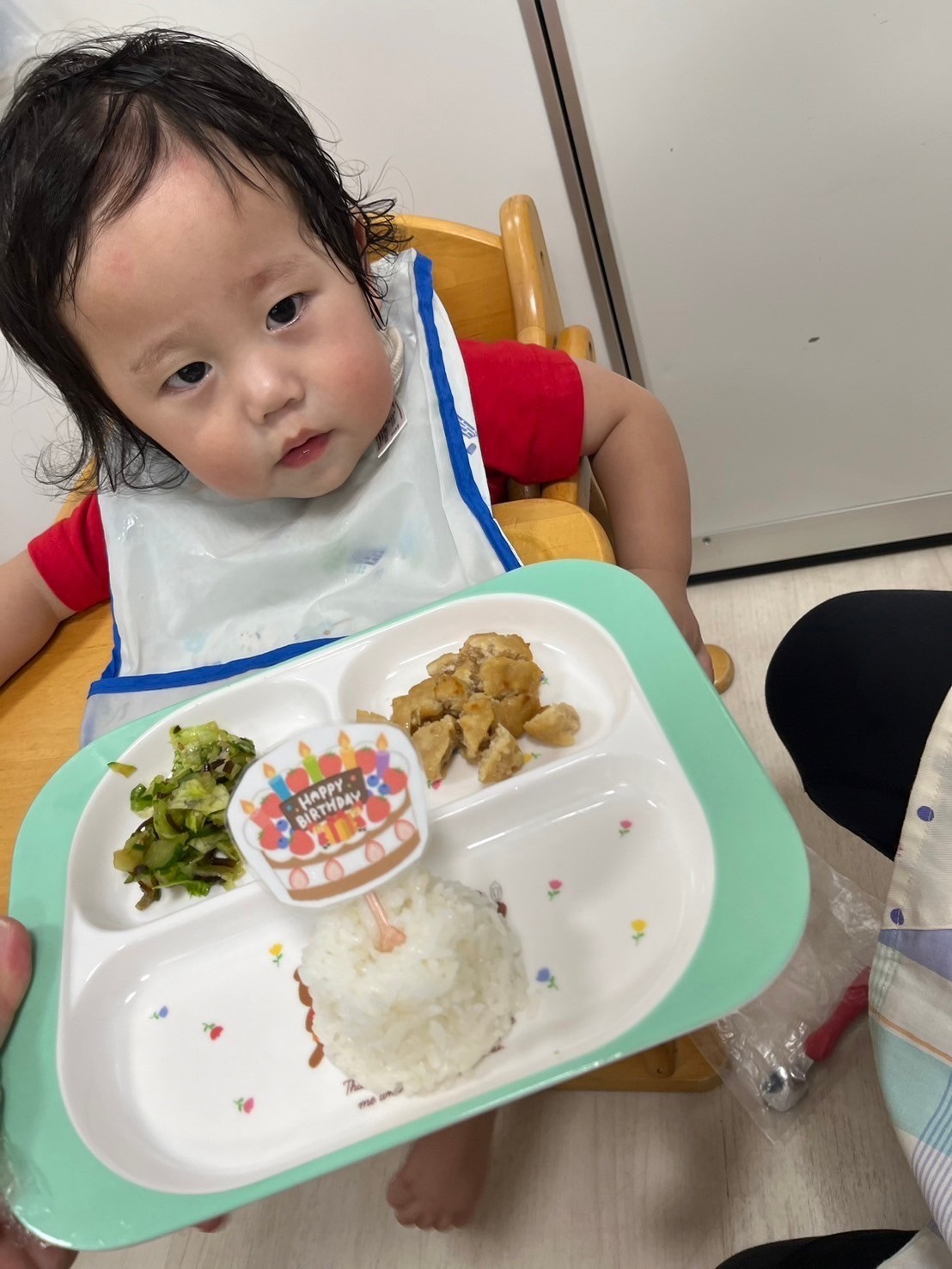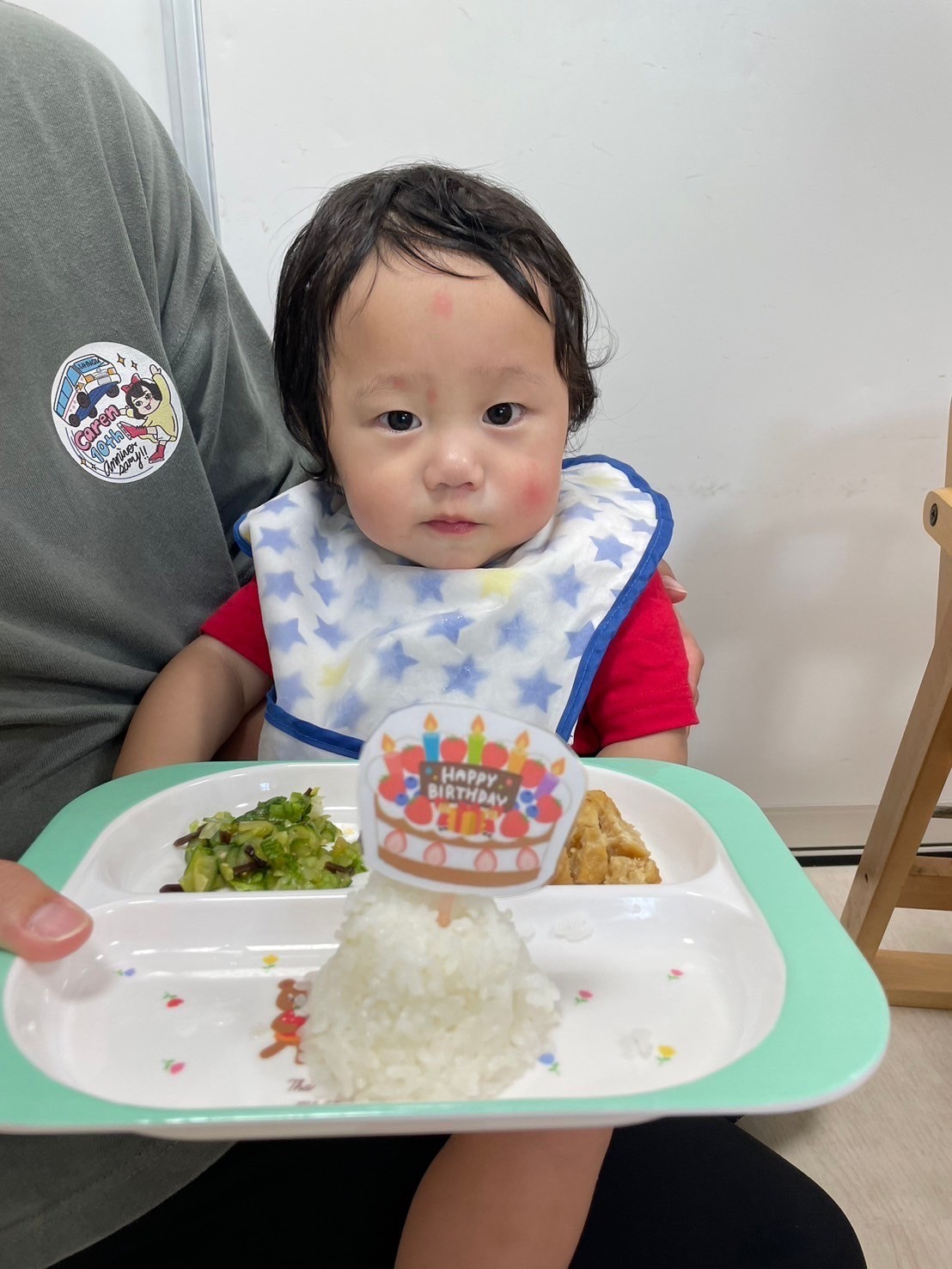 可愛いひよこ組さんも初めての誕生日会参加でしたが、先生に抱かれながら落ち着いて参加ができていましたよ☺️🎊