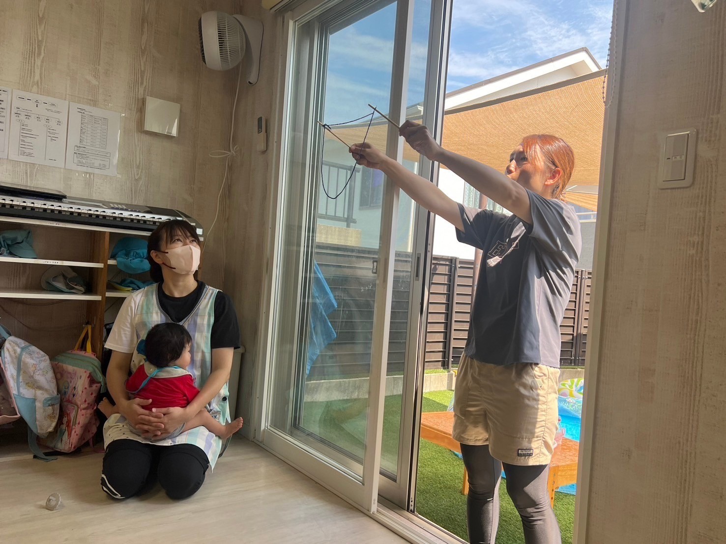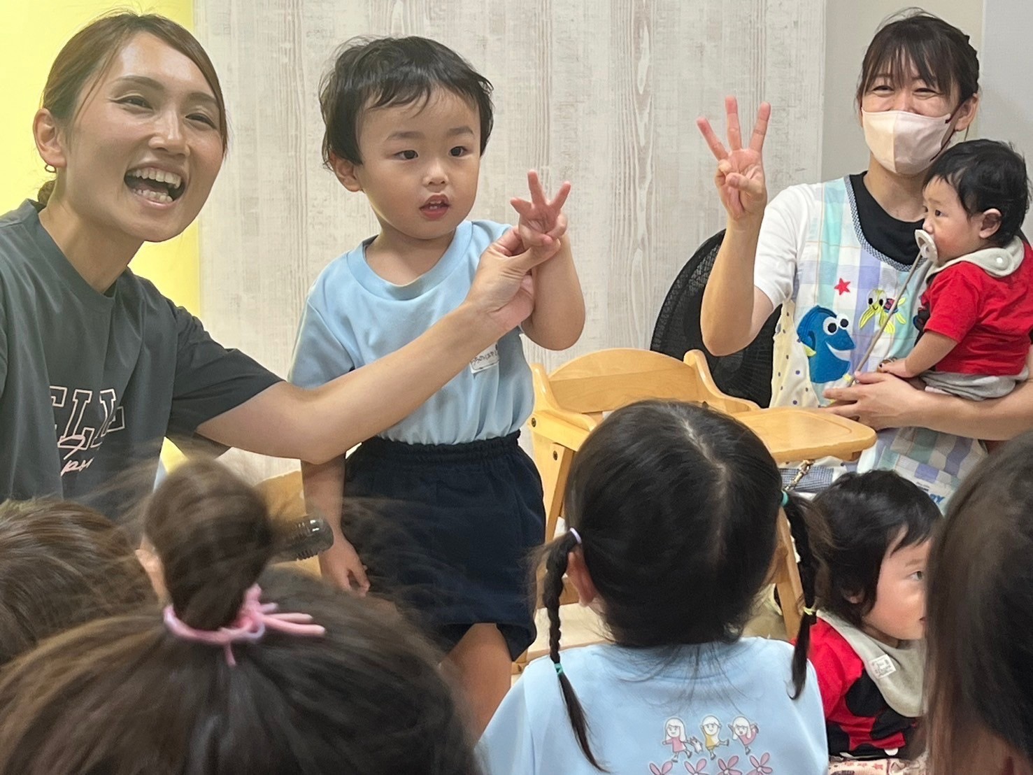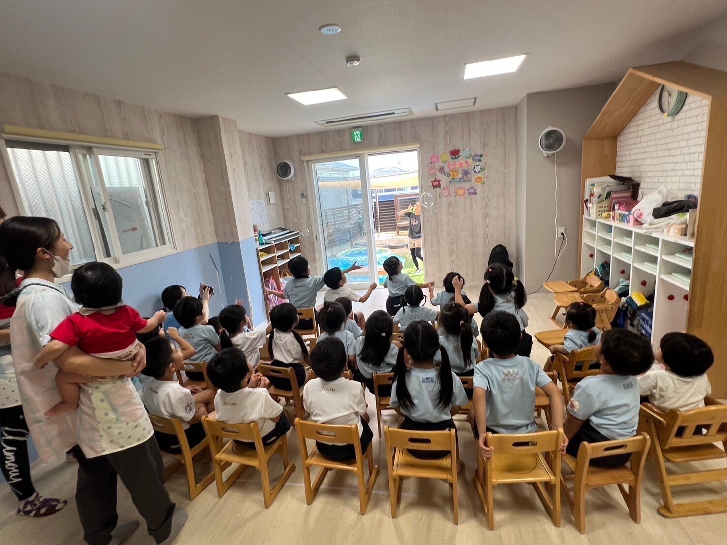 今日は8月生まれのお友だちの誕生日会🎂💓なんと6人ものお友だちが主役でした❗️インタビューもとても上手で名前も言えていて、小さい組さんにはちゃんと答えやすい質問を考えてくれていました😍先生からの出し物はシャボン玉🫧おうちにある物で色々なシャボン玉を作ってみました🌟意外なものから意外な形のシャボン玉ができて歓声が上がっていましたよ😆❣️その後の水遊びでもシャボン玉コーナーを設けてみんなで楽しみましたよ💖見学のお友だちは塗り絵やシルバニアで遊びました✨