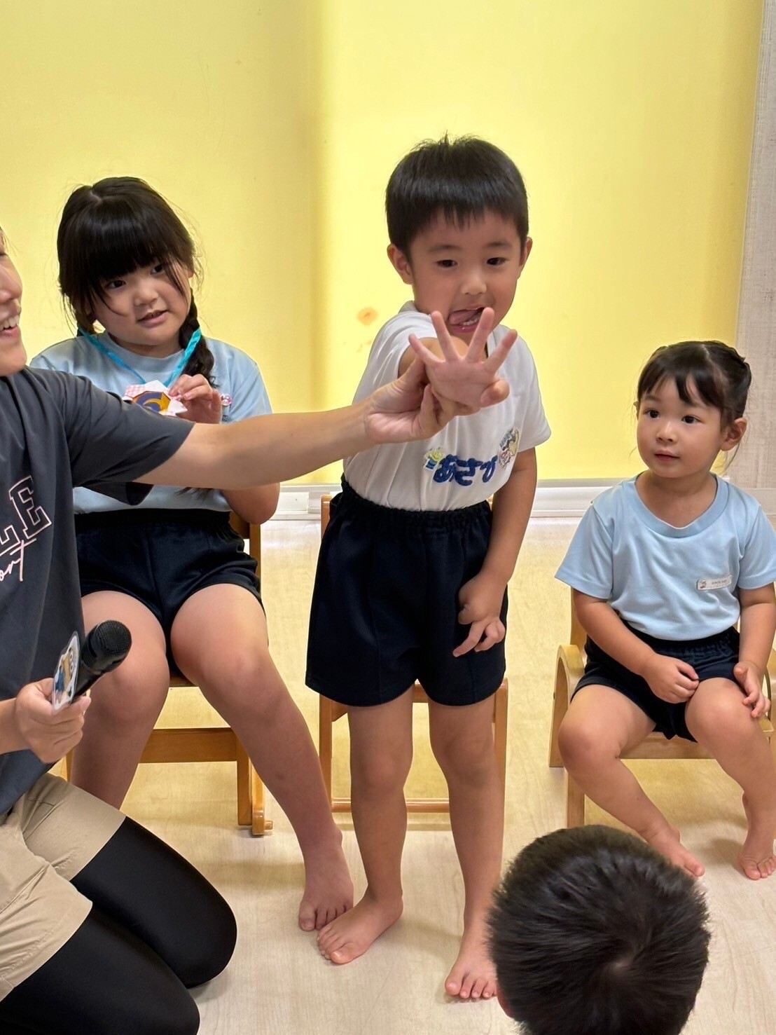 今日は8月のお誕生日会🎂🩷小さい組さんからは4名のお友だちが主役でしたよ💖😍ぱんだ組さんはインタビューで名前もしっかりと答え、みんなからの質問にも全てこたえられていて感心しましたよ☺️順番待ちもとっても上手でした❣️