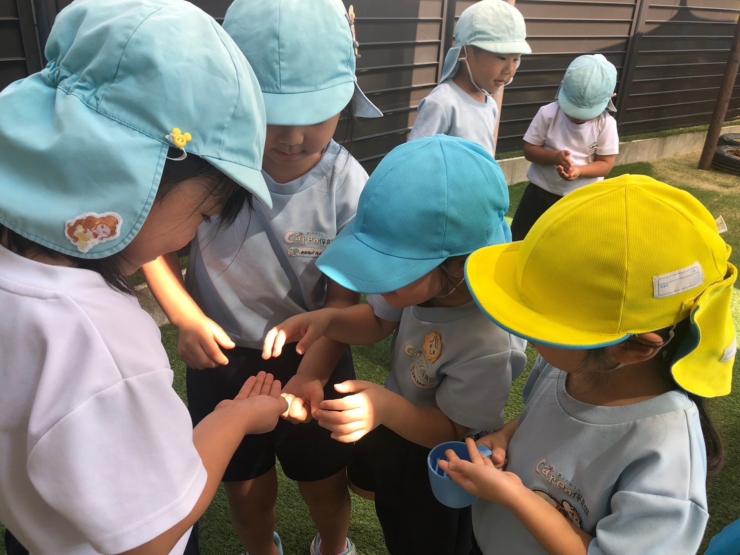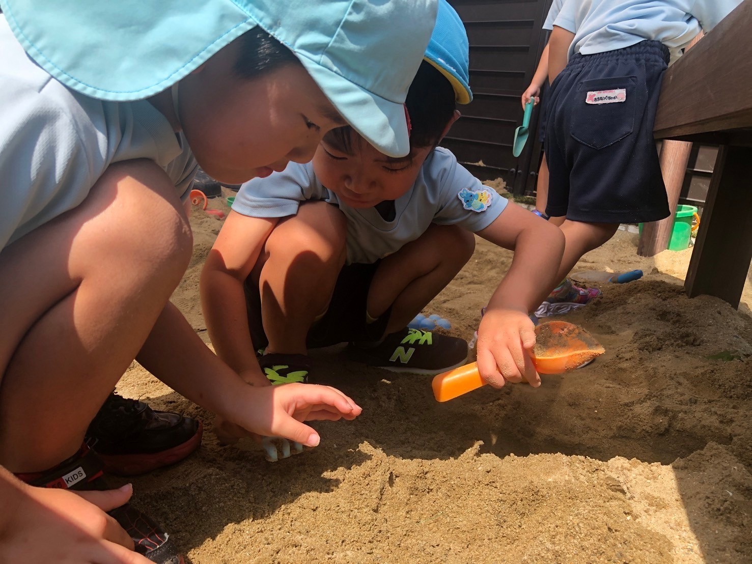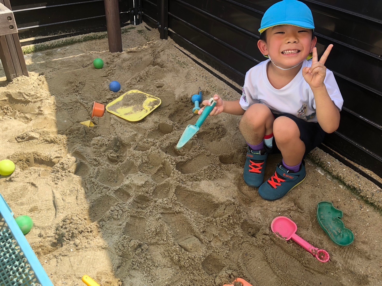 台風が過ぎ去り、少し風が涼しくなってきたので、長めに時間をとって遊ぶことができましたよ☺️砂遊びや虫探し、滑り台で盛り上がりました❣️