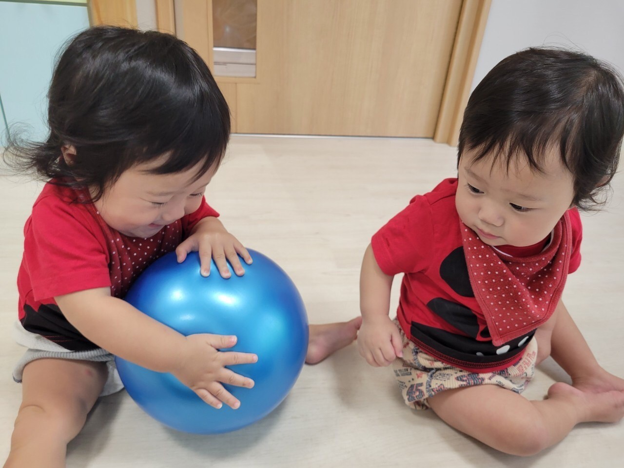 ひよこりすさんも意欲的にボールを掴んで遊んでいました😍笑顔がとっても可愛かったです💕【うさぎ、こあら、きりんぐみ】