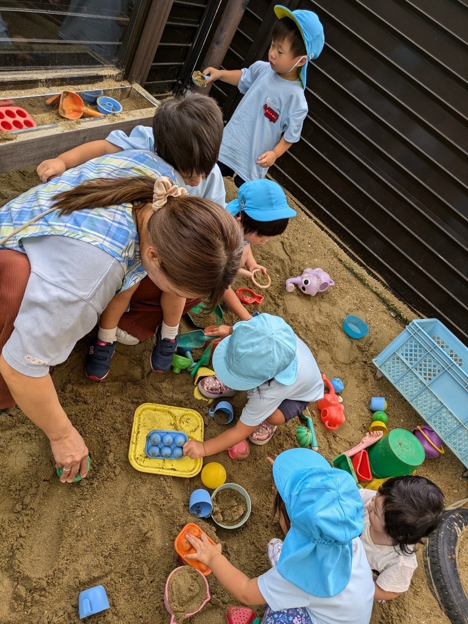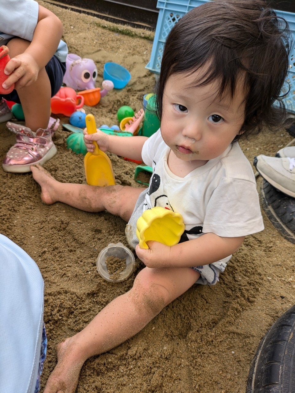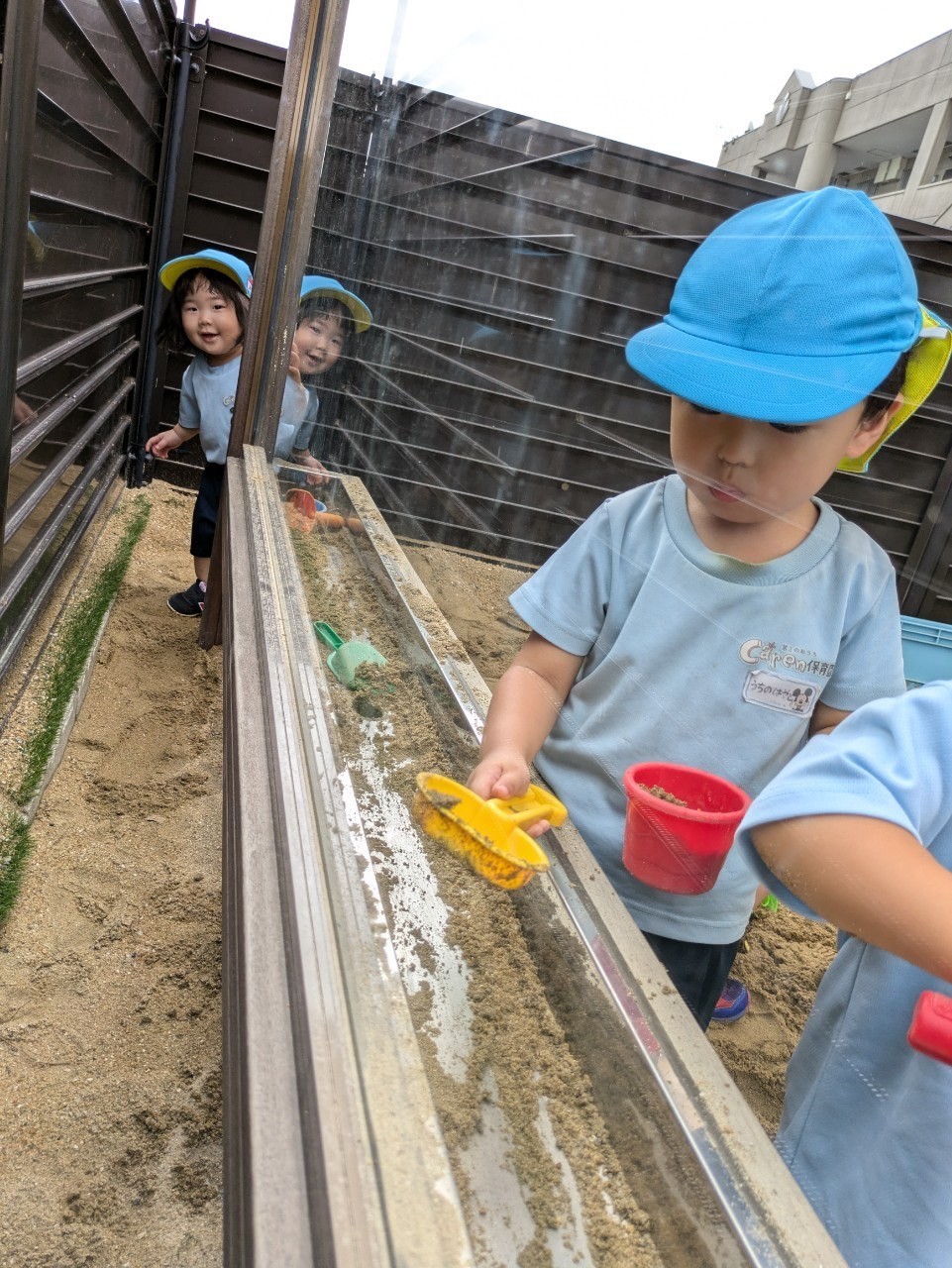 「ねむたーい」「あたまがくらくらする」等言っていた子どもたちですが、砂遊びに夢中になり滑り台を繰り返し滑りだんだん遊びが激しくなってきました🤩