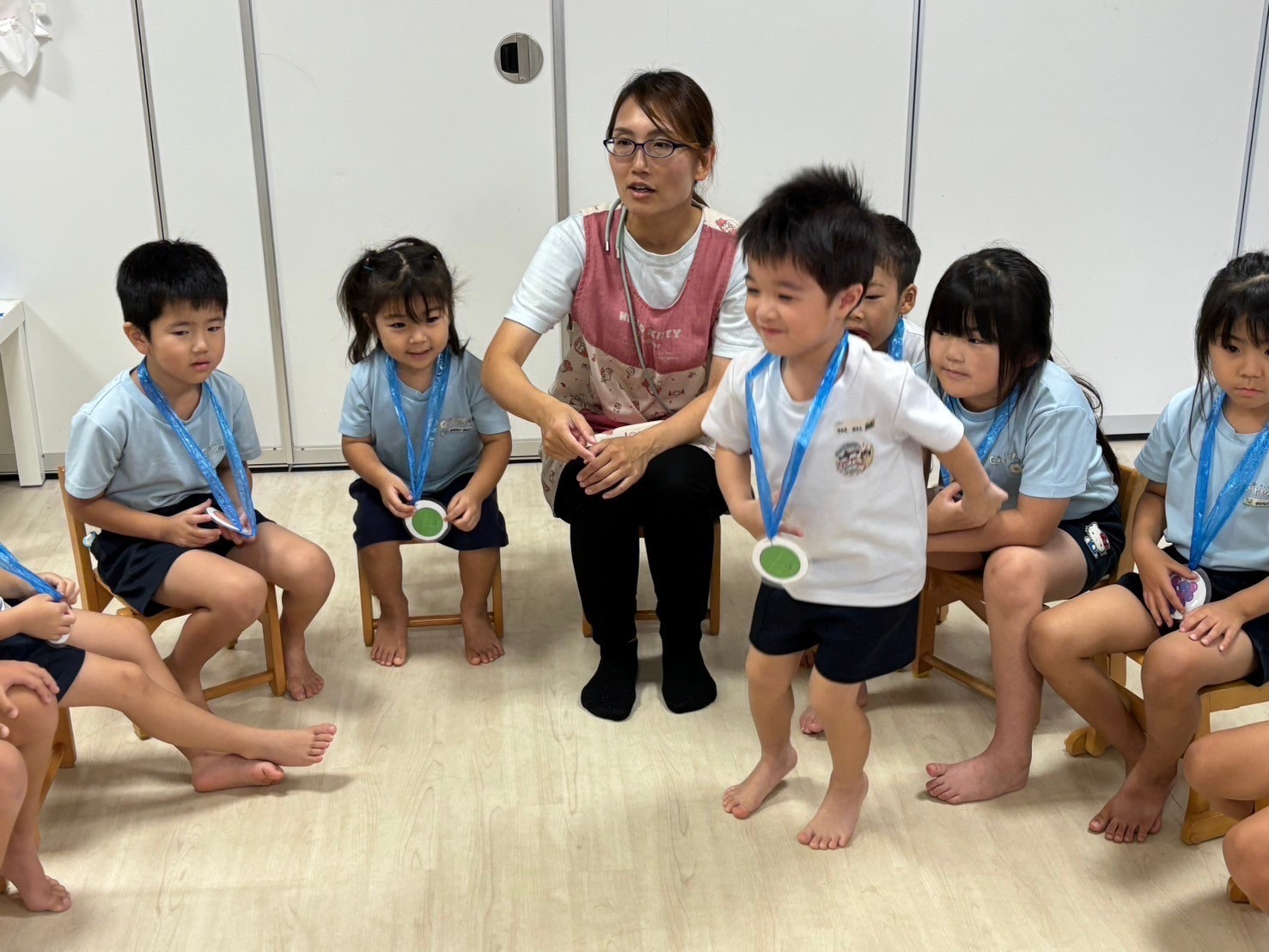 十五夜の17日にキレイなお月様見るー😄🌟と楽しみにしていた子どもたちです😍誕生会会の後はかっこよく座ってお話を聞き、お約束を守って大好きアンパンマンおもちゃで遊びました☺️