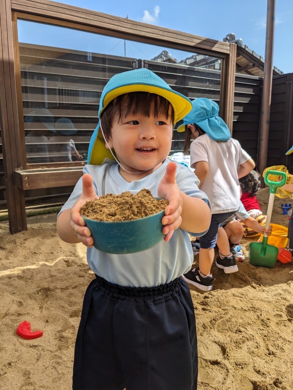 「いらっしゃいませー」とお店を開いたり友だちと協力して砂山を作ったり久しぶりの砂遊びを思う存分に楽しみました✨