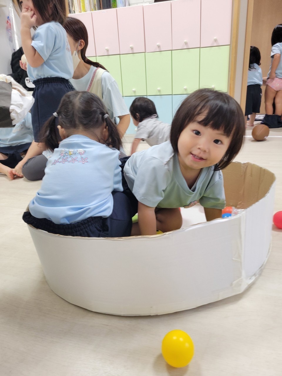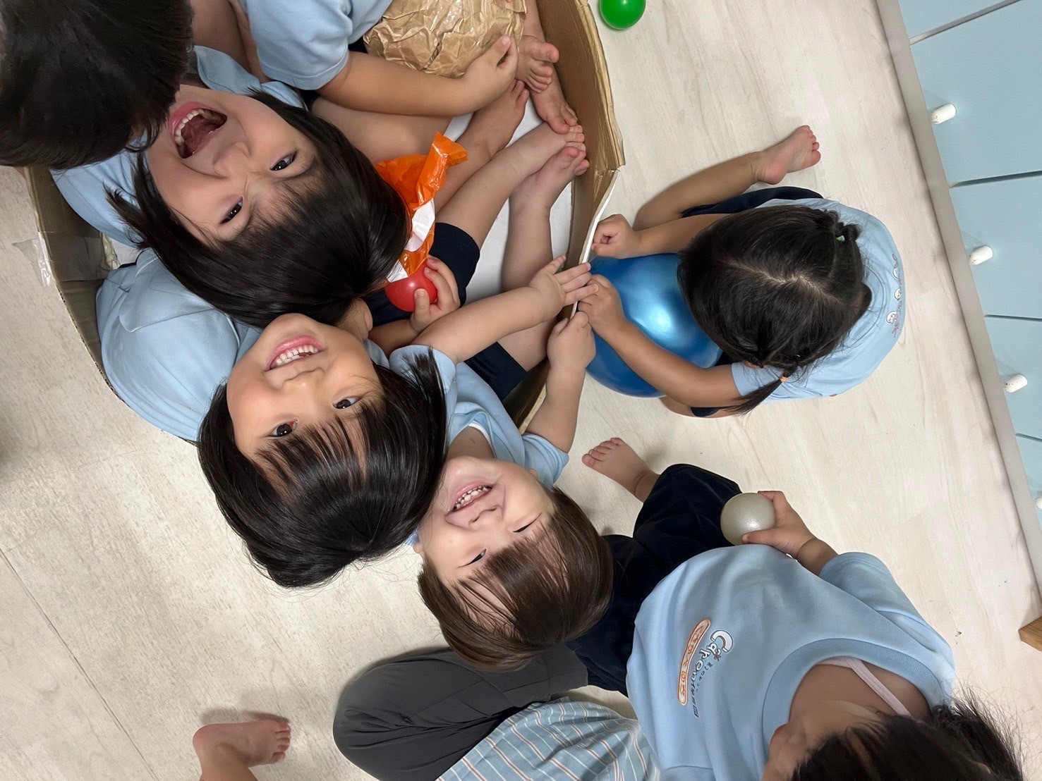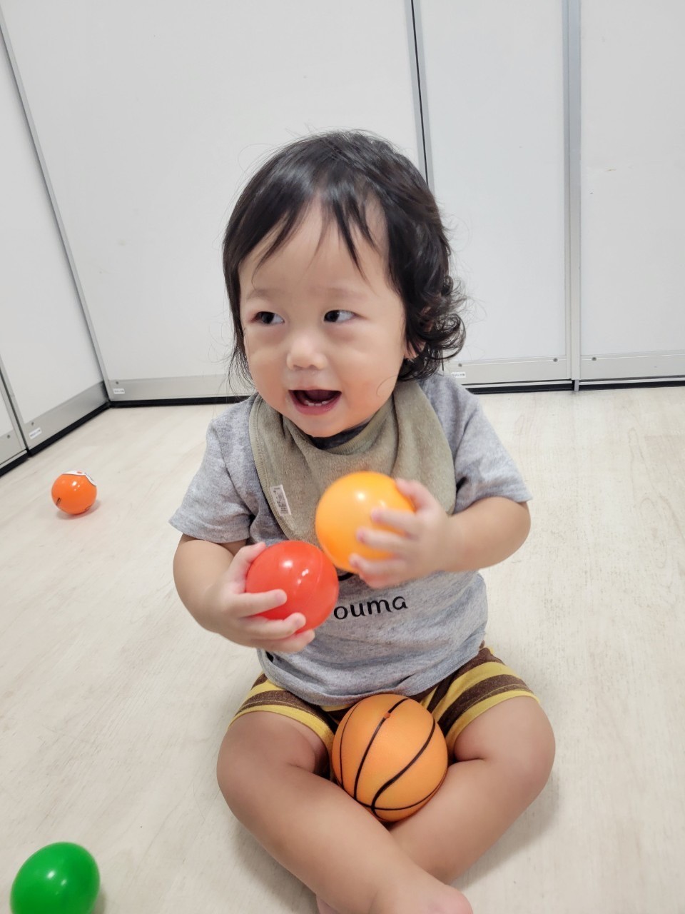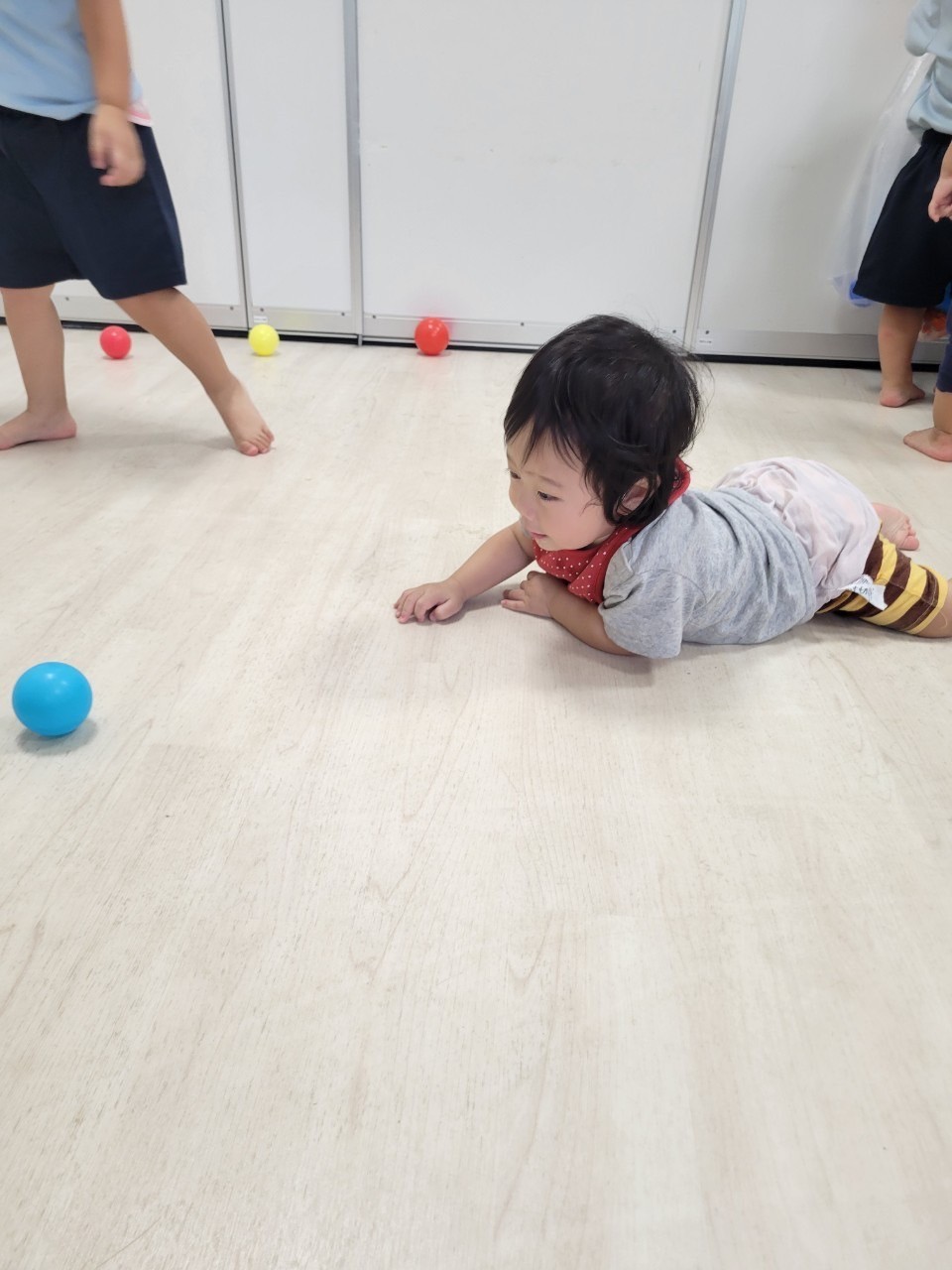 室内遊びではボール遊びをしました。友達と譲り合いながらボールを転がしたり、袋に入れたりして遊びました😊