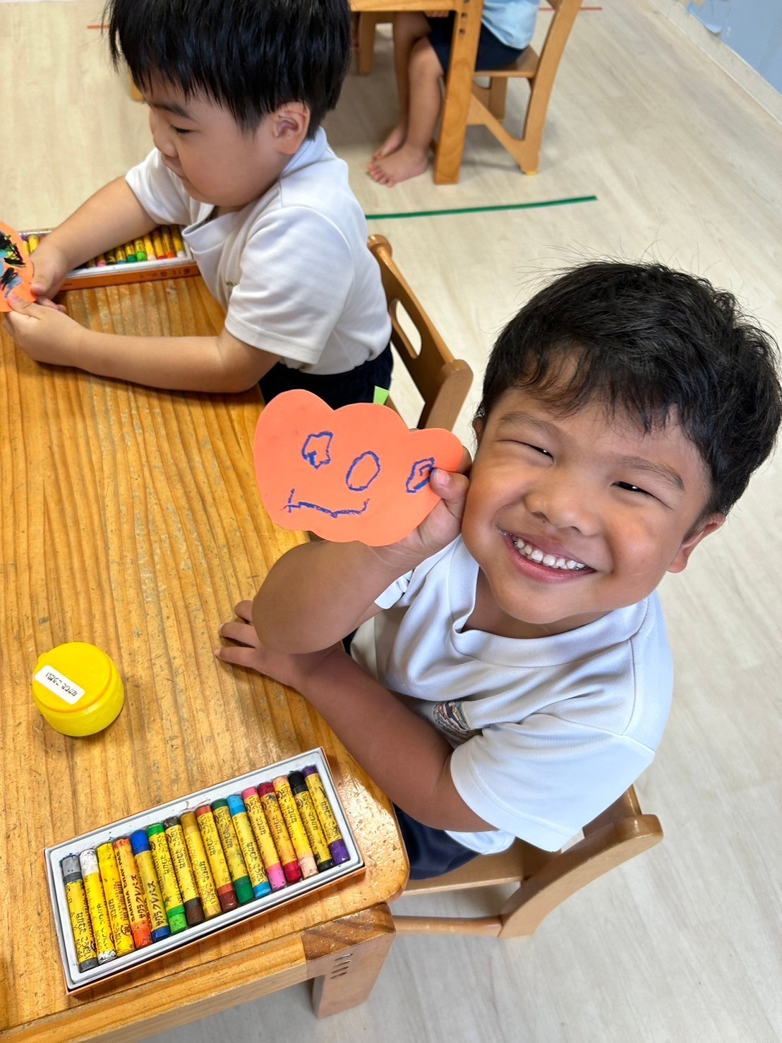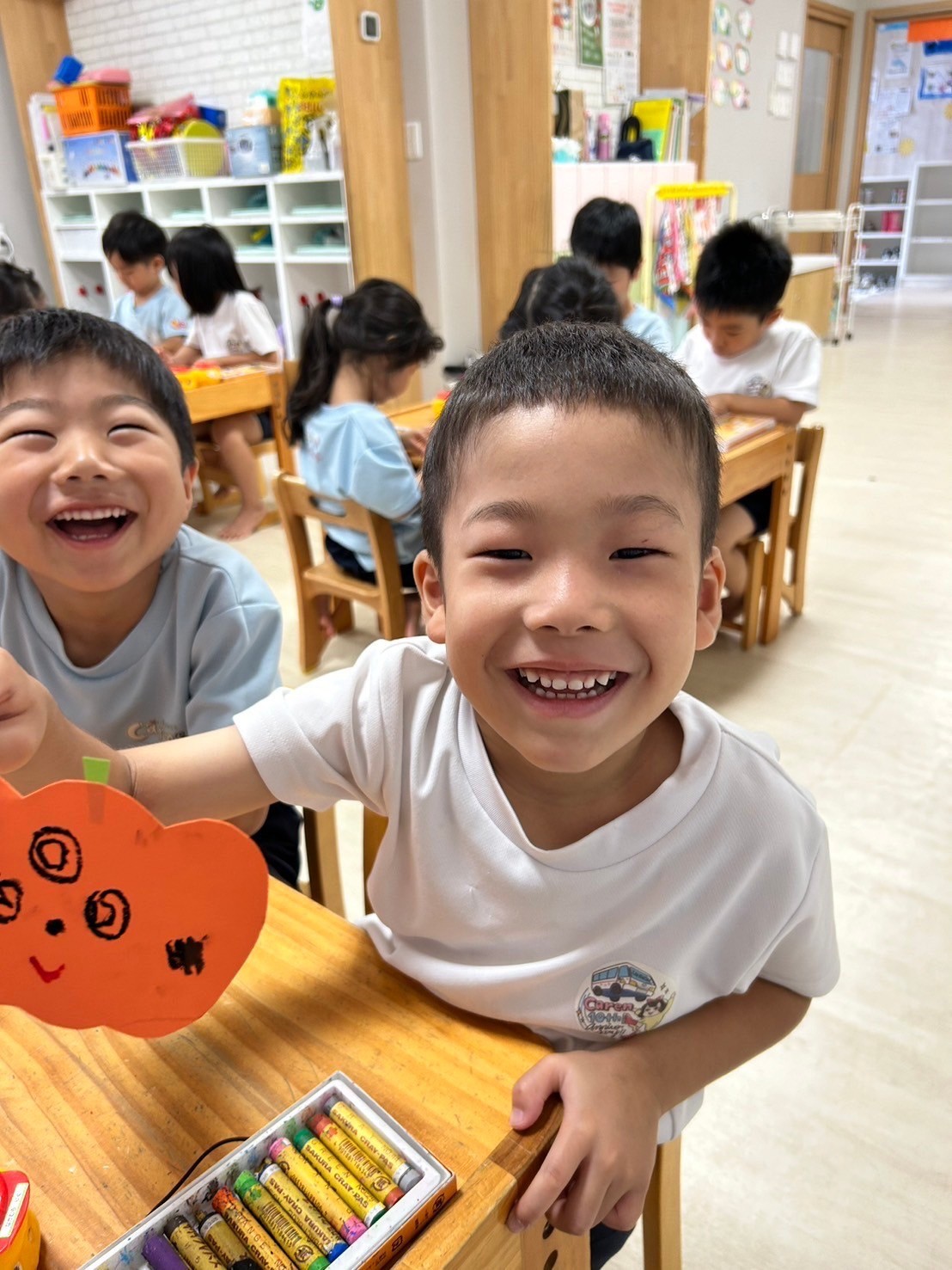 今日は絵本の読み聞かせの後、ハロウィンに向けての製作の続きをしました🎃💕かぼちゃに顔を描いて、お菓子バッグに先日仕上げた塗り絵を貼り付けました🌟製作の後は、発表会に向けての歌とダンスの練習をし、運動遊びでトランポリンと鉄棒をしました❣️逆上がりを自分でできるようになった子がいたり、前まわりを自分でできるようになった子がいたり、成長を感じられましたよ✨室内でも身体をしっかり動かしながら元気に過ごしました☺️‼️