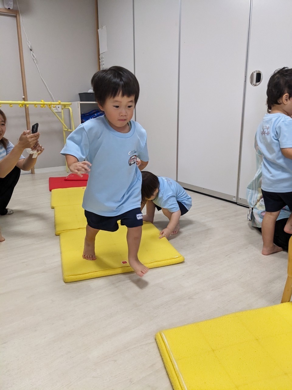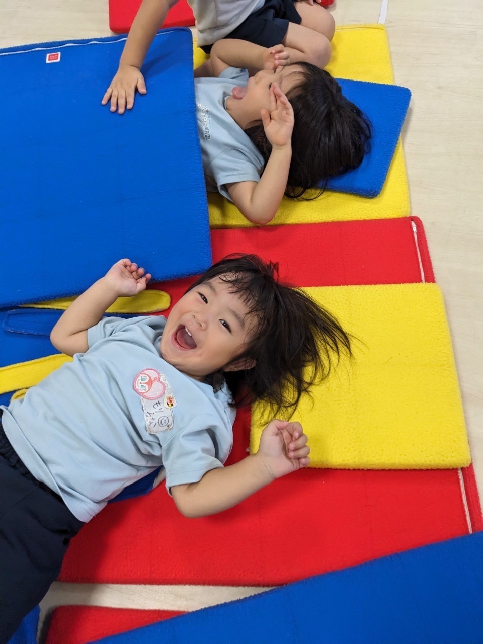 tackteck遊びでは友だちや先生たちとごっこあそびやジャンプあそびをしながら、広いスペースで仲良く楽しめていましたよ😍