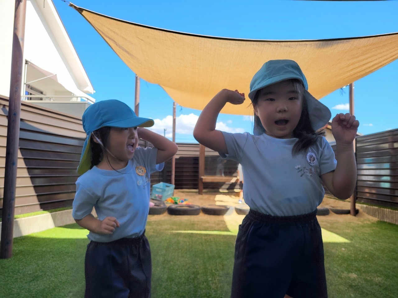 気持ちの良い風も吹いていましたが、水分補給に気をつけながら過ごしています。【きりんぐみ】