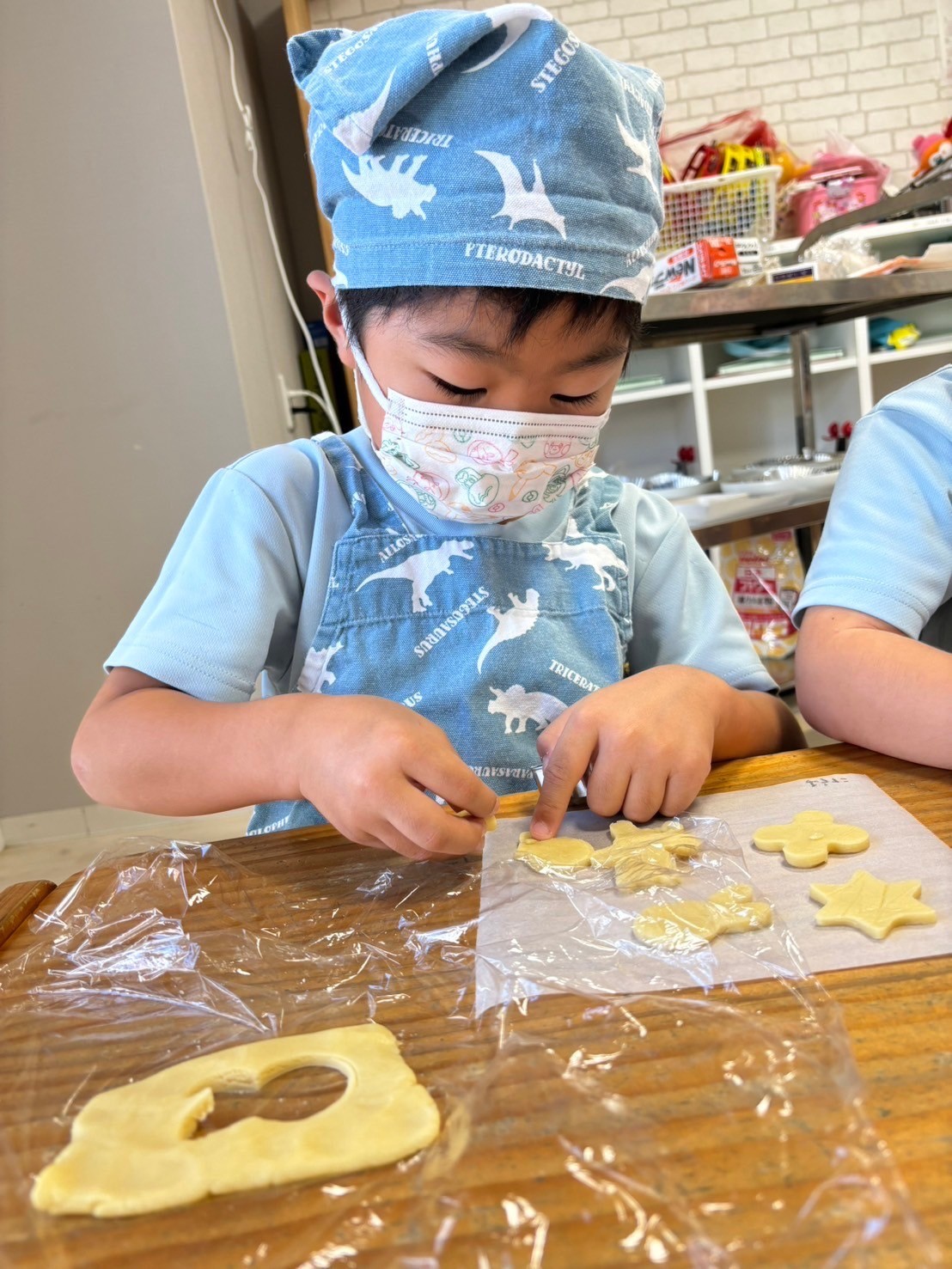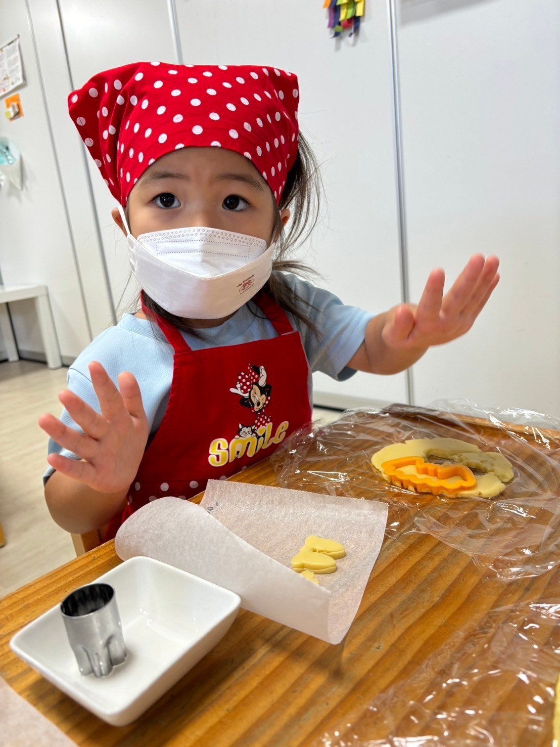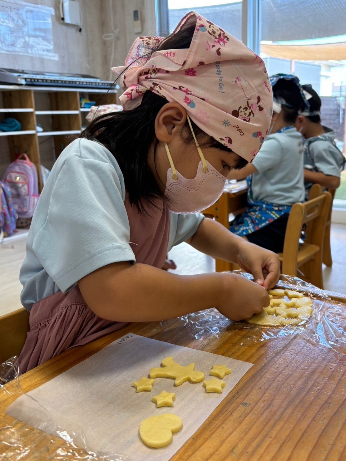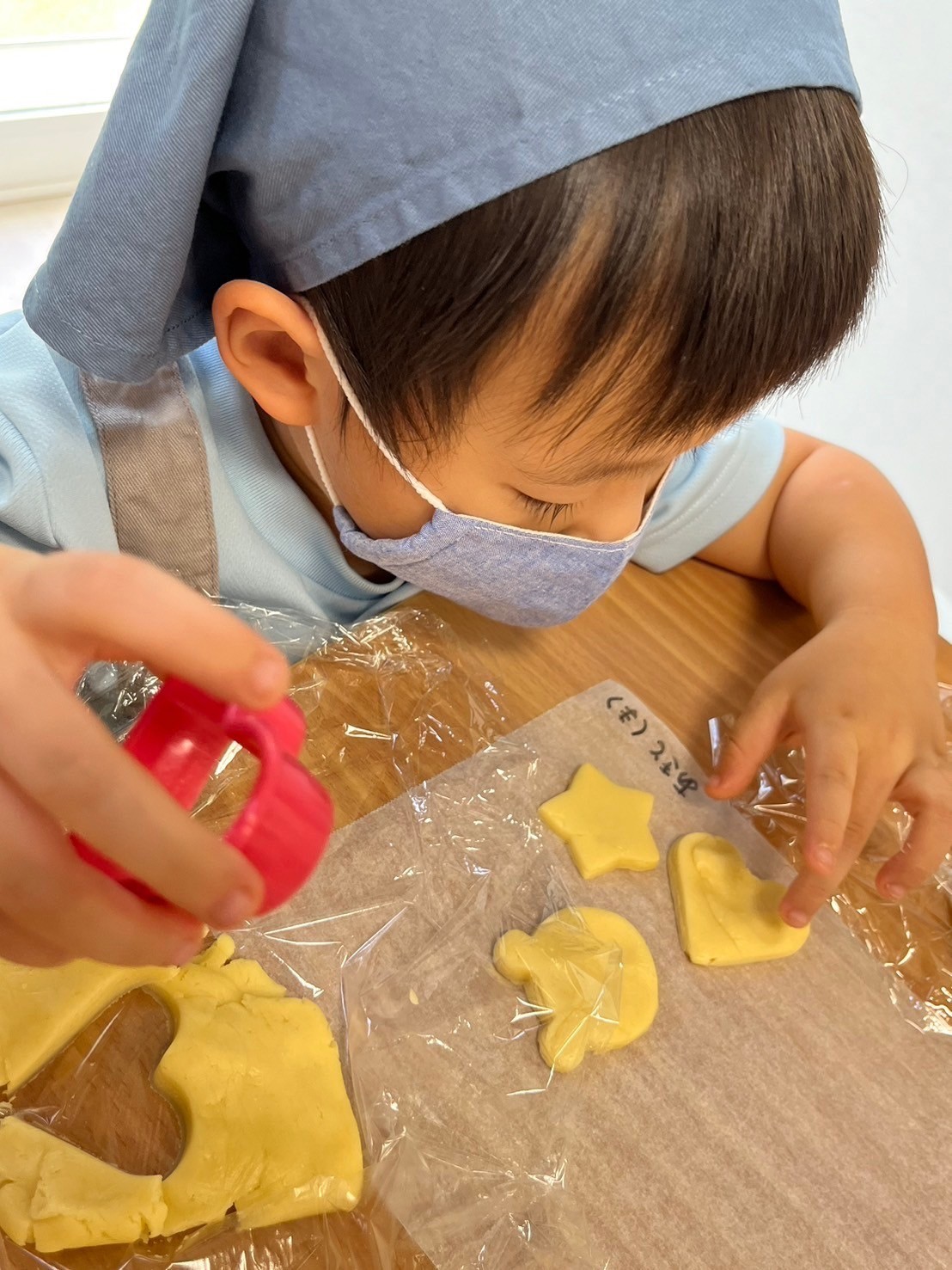 嬉しそうに給食の先生の話を聞き、最後まで落ち着いてクッキーの型抜きができましたよ☺️✨