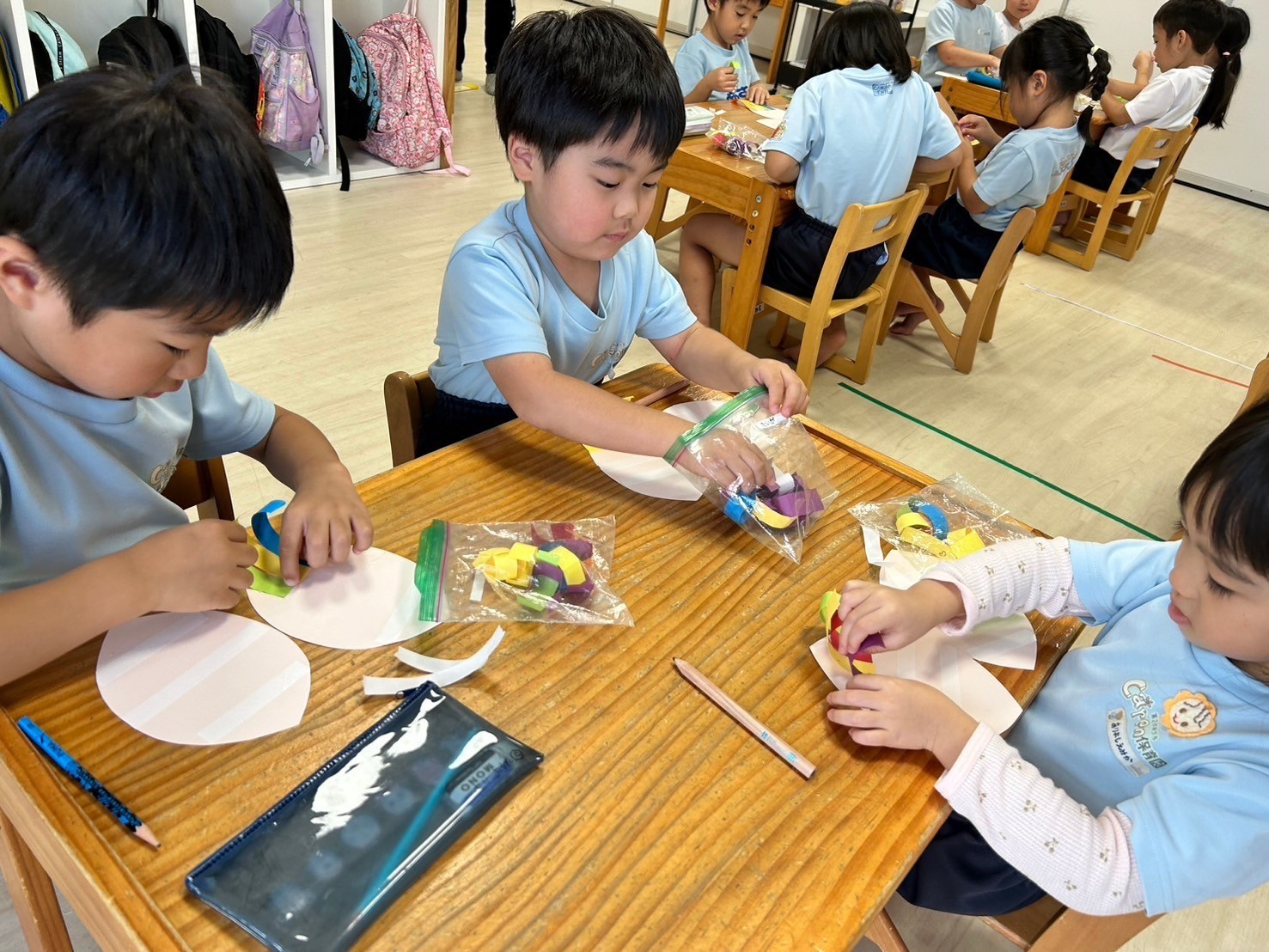 今日は絵本の先生が来てくれました😊✨絵本の聞き方を意識しながら聞くことができましたよ💕そのあとは製作でミノムシを作りました❣️「ミノムシって何?」という子も多く、写真も確認しながらイメージを膨らませて製作しましたよ☺️ただ画用紙貼り付けるのではなく、鉛筆に巻き付けて〝くるりん“おしゃれなミノムシさんの完成🤗💖みんなとっても器用でした🌟最後に楽しみにしていた食育😄❤️エプロンを身につけてクッキー作り🍪思い思いに色々な型を使い、可愛くデコレーションして仕上げることができました💖おやつに食べるのを楽しみにしているみんなです🥰