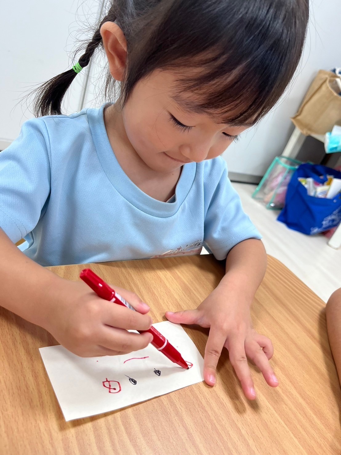 その後は月の製作できのこのお顔を描きましたよ🍄描き方が上手になっていて感心しました✨