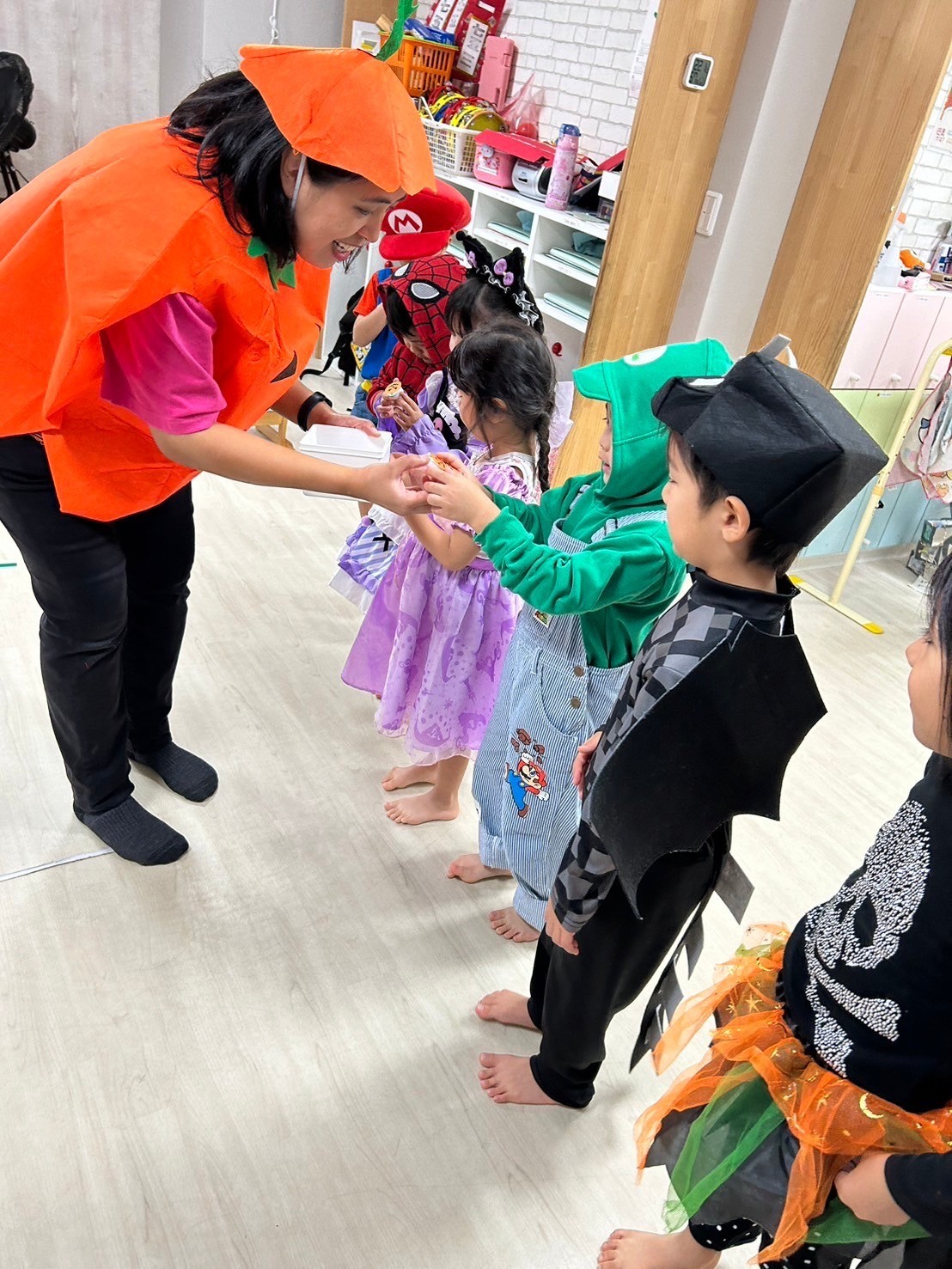 「trick or treat👻」や「Happy Halloween🎃」も元気いっぱい言えていて、お礼や挨拶も上手にできていた子どもたちでした🌟