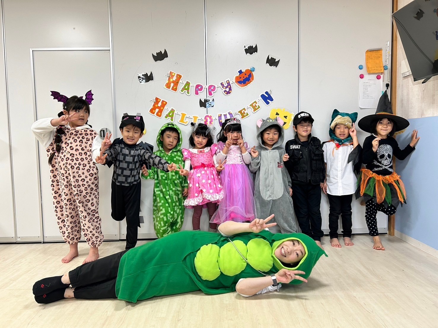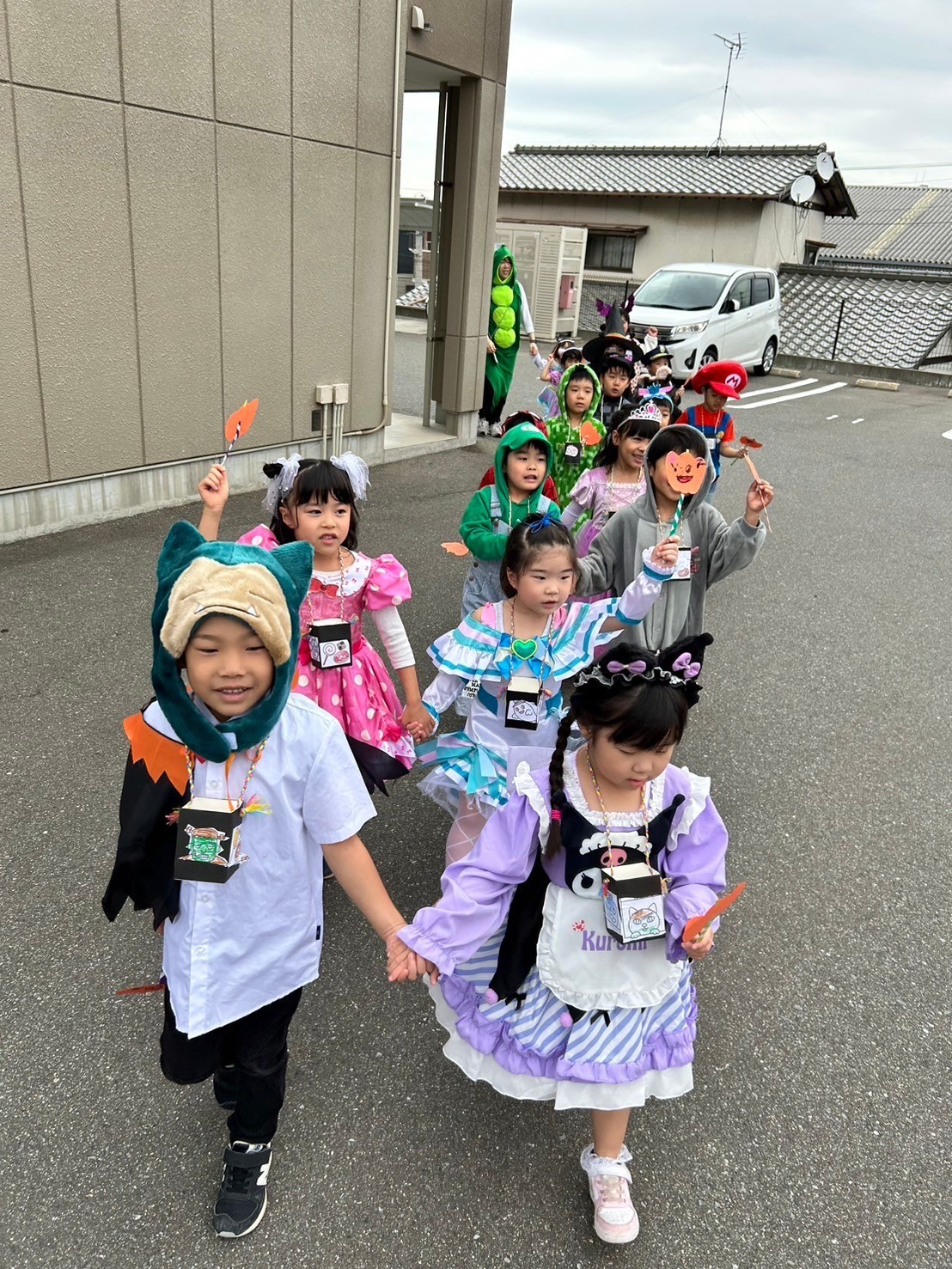 英語レッスンではハロウィン絵本やゲームを元気いっぱい満喫し、チャリナ先生も一緒にご近所パレードに出発しました🎃💓