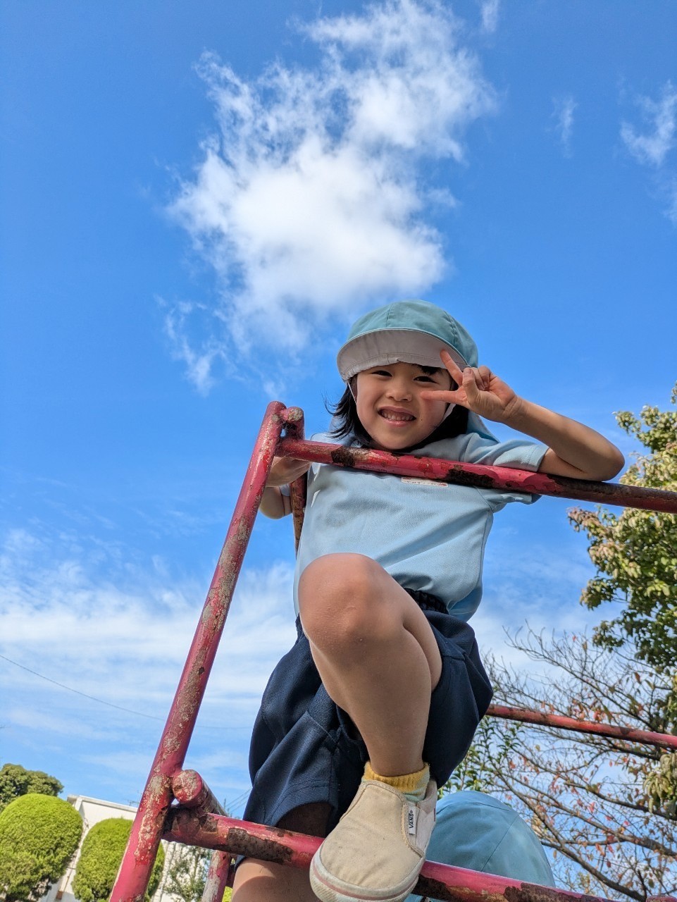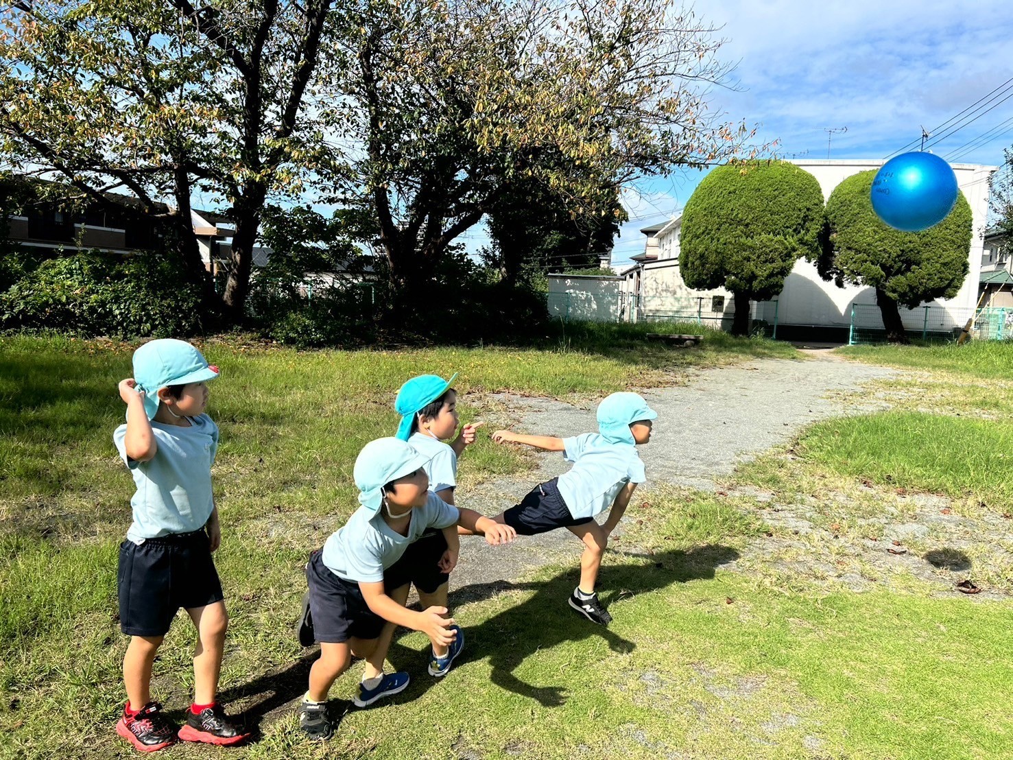 今日は避難訓練の日でした⭐️保育園に不審者が…💦という設定で避難訓練を行いました!みんな先生たちの話をしっかりと聞いて静かに避難し、自分を守ることができました😊玄関には知らない人が来ることもあるので近づかないように約束しましたよ😌✨火事の時のお話もして、みんなで「お・は・し・も・ち」の合言葉も再確認できました‼️大切なお話をした後は、いい天気だったので裏田公園へ🤗ブランコや鬼ごっこ、ボール遊びと身体をしっかり動かして、秋空の下で思いっきり遊びました😝