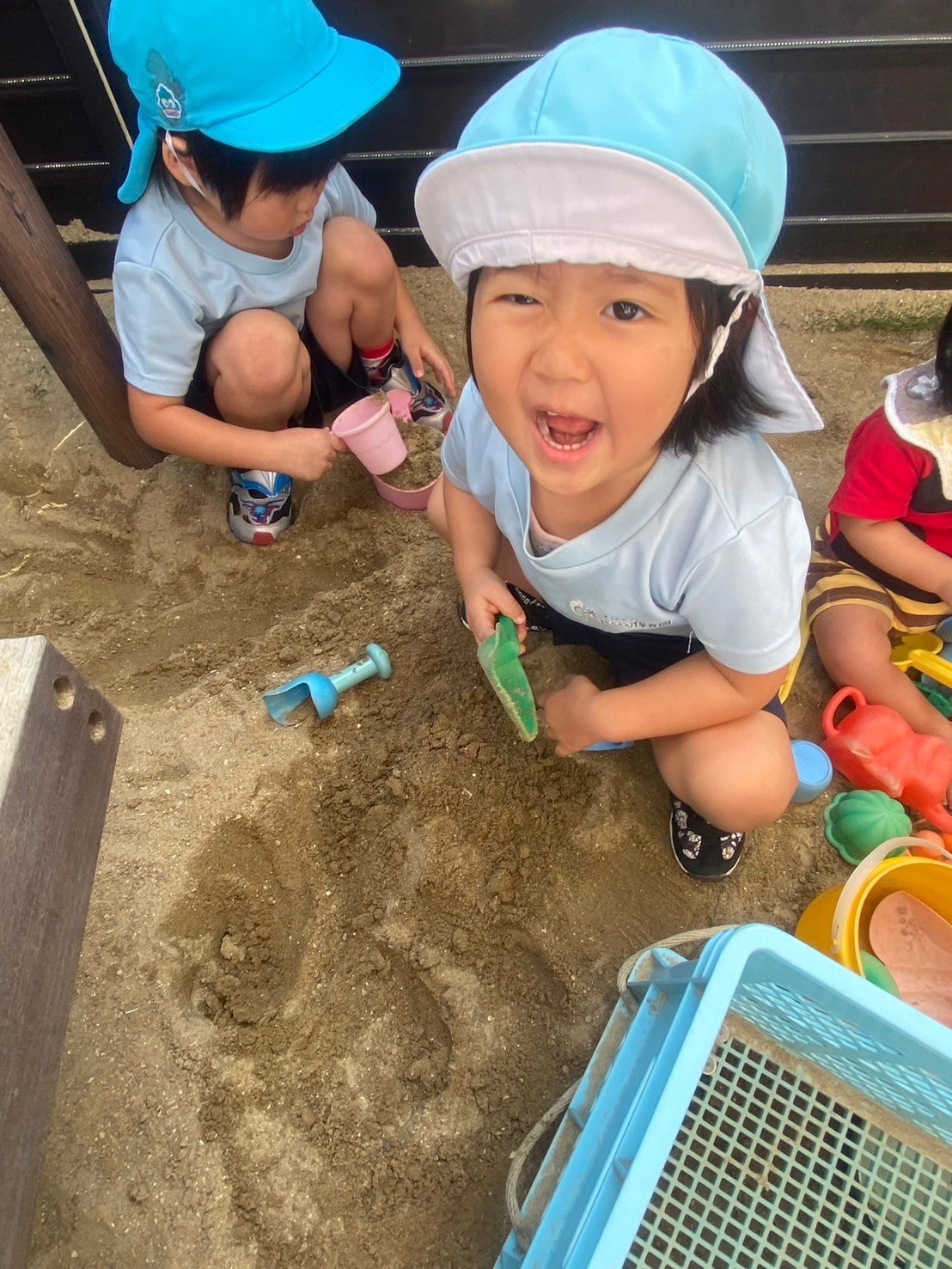 友だち同士であーそーぼ💕いーれーて❣️と遊びに誘い合い、アイスクリームをたくさん作ったり、大きなお山を作ったりして、繰り返して楽しめていましたよ☺️お砂遊びが大好きなみんなです💓【うさぎ、こあら、きりんぐみ】