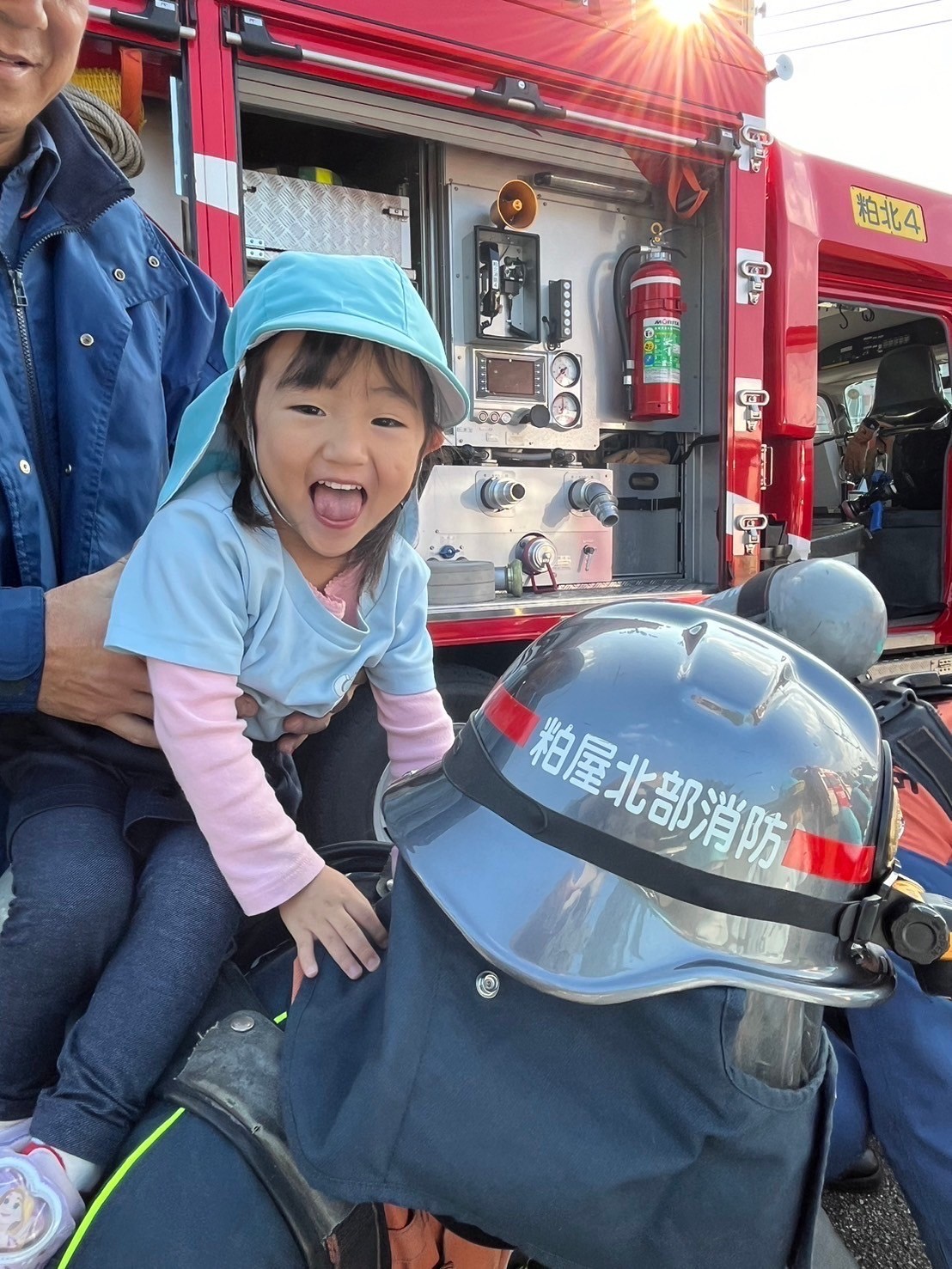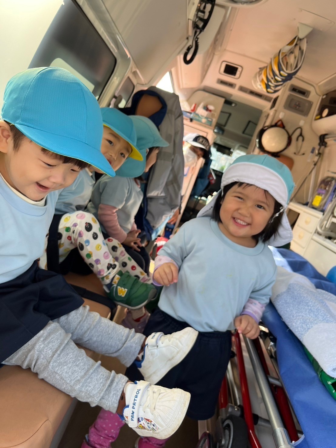 たくさんの道具や服、救急車消防車の中を見せてもらえて徐々に笑顔が見られていましたよ😍