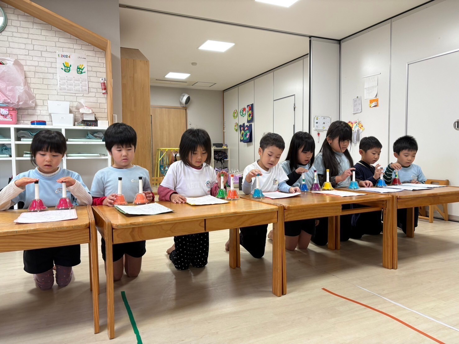 今日は急遽リトミックがお休みになったので、発表会の練習でこあらさんは劇で強弱をつけられるように練習したり、きりんさんはハンドベルでつまずきながらも声を掛け合い最後まで通すことができました🌟練習のあとは、衣装合わせ、嬉しかったようで、衣装を着て大騒ぎでした🤣衣装のご協力ありがとうございます❣️子ども達もとても喜んでいました🥰今後の練習にもハリが出てくると思います‼️