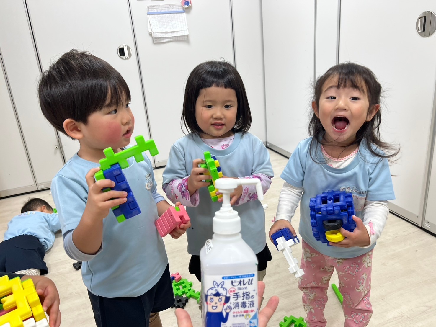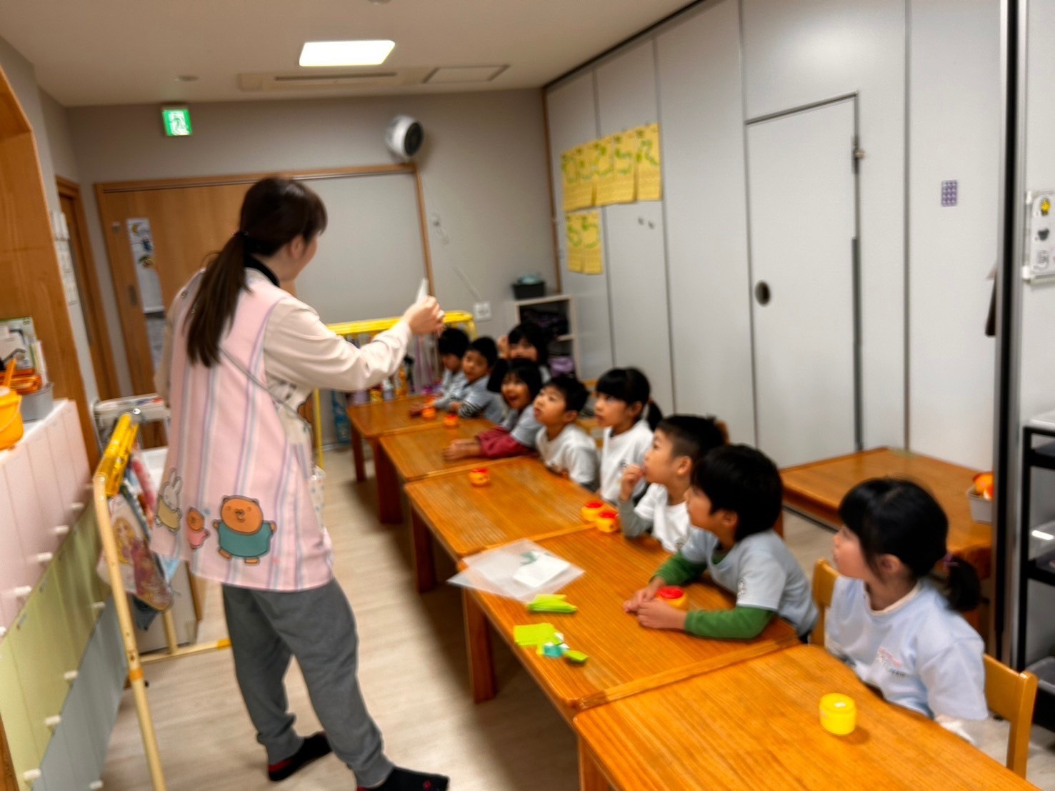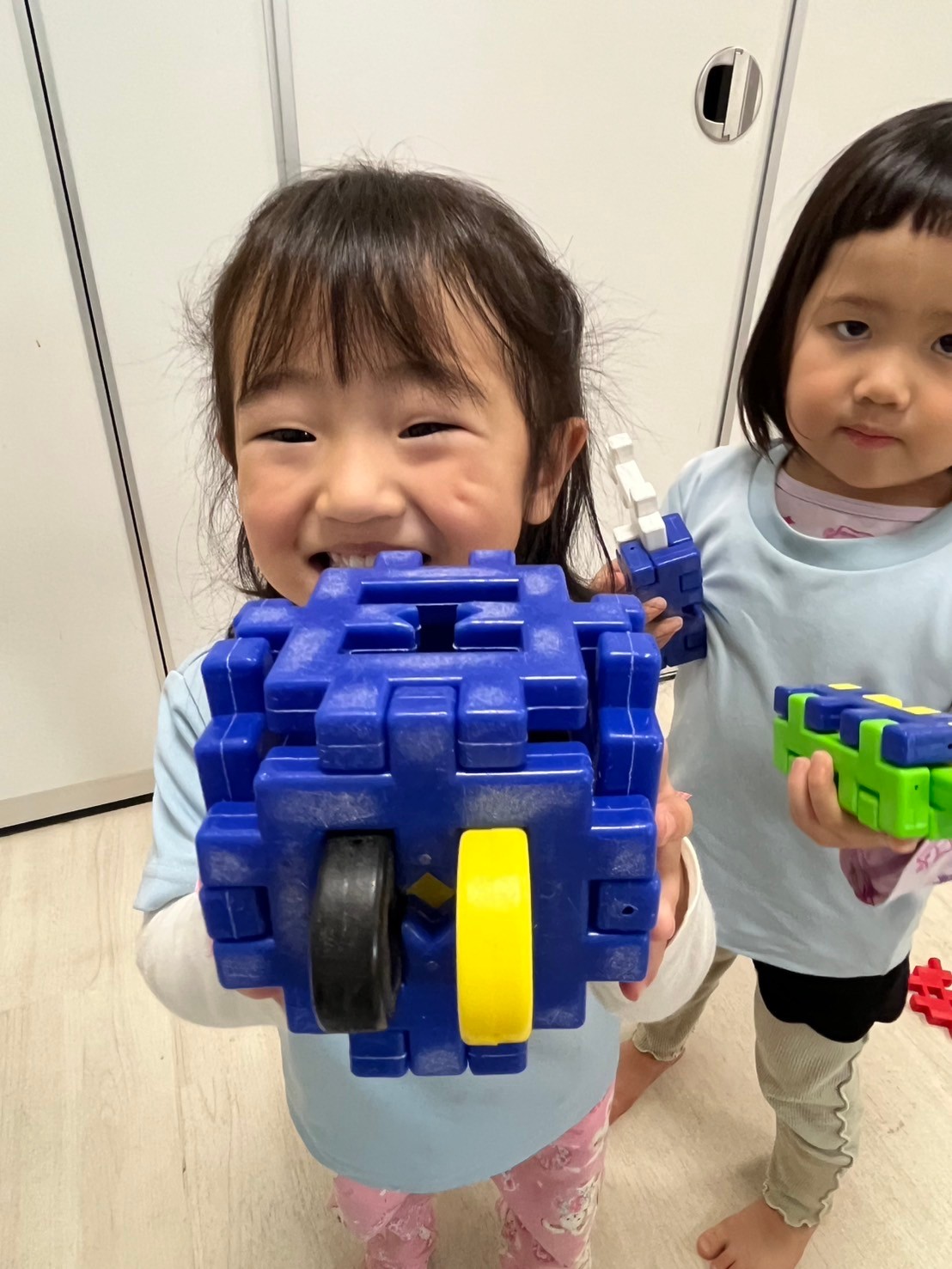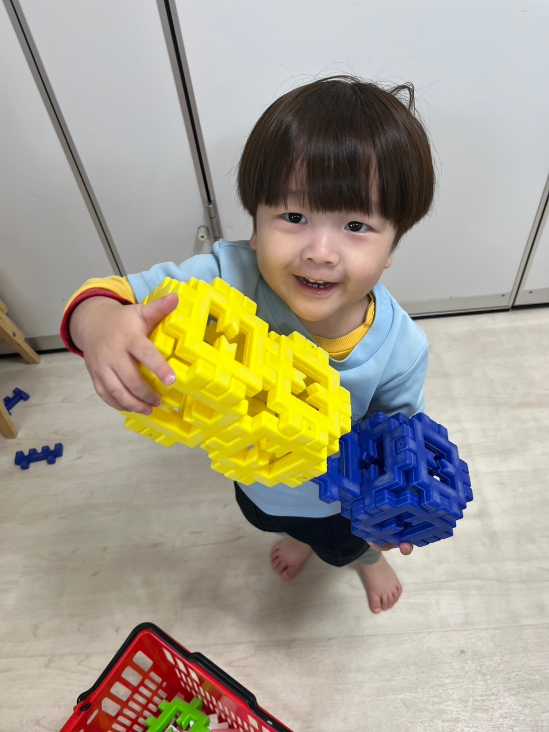 英語レッスンでは色のカードを見てぱんださんが声に出しているのを心地よく聞き、なんとなく発音しているりすくみさんもとっても上手でした👏トナカイさん福笑いゲームも笑顔で喜んでいました✨
