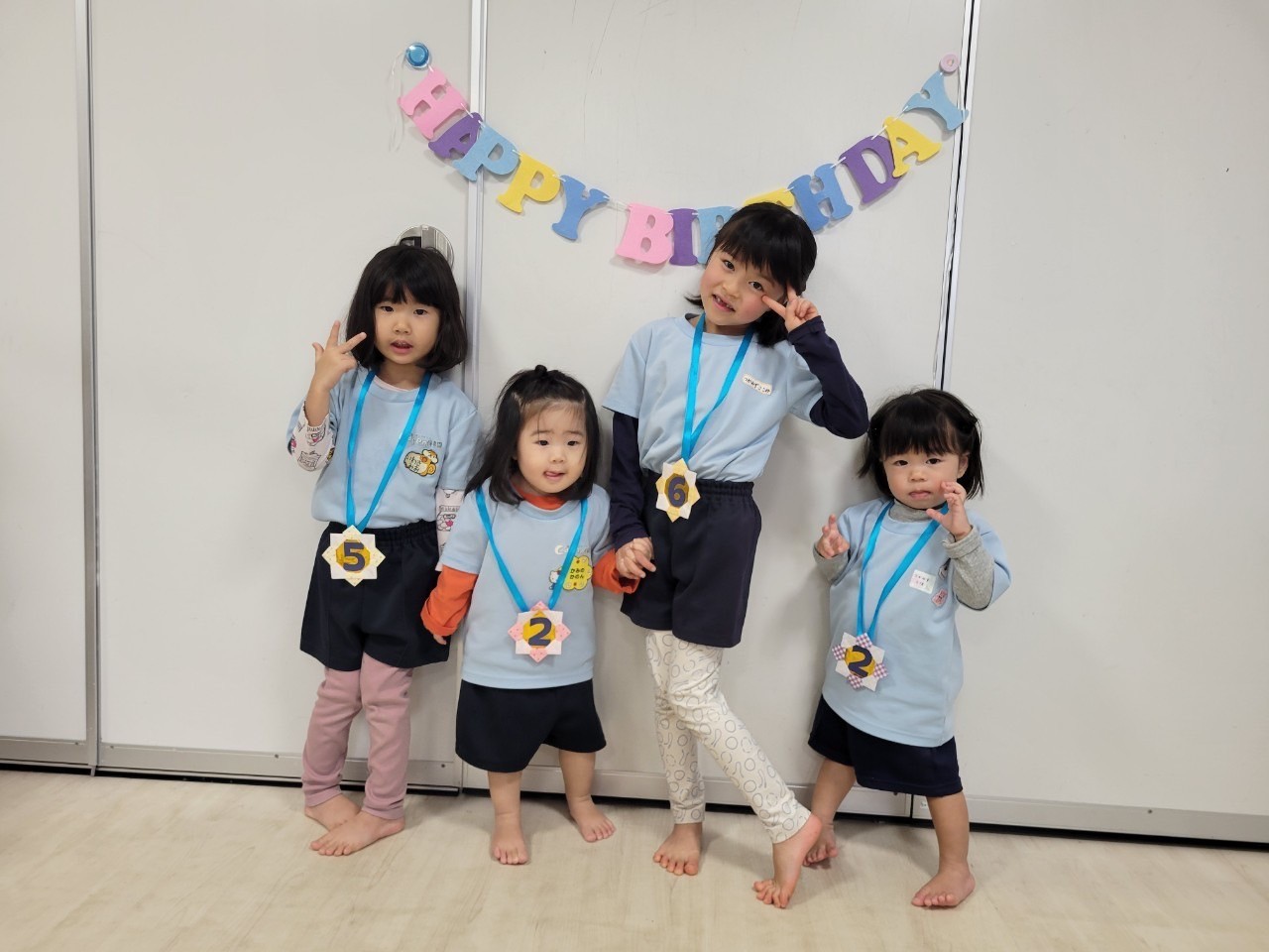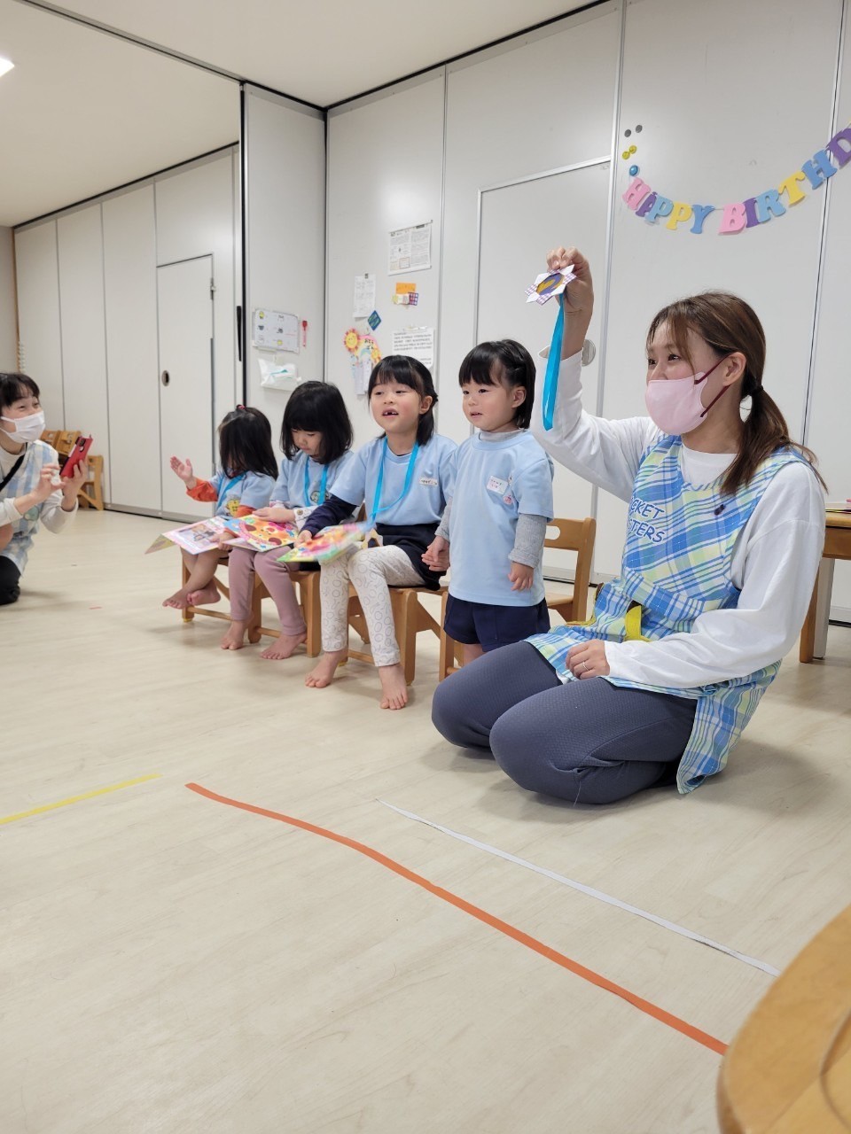 リスさん2人、コアラさん1人、キリンさん1人みんなで4人の12月生まれのお友達がいました🎉