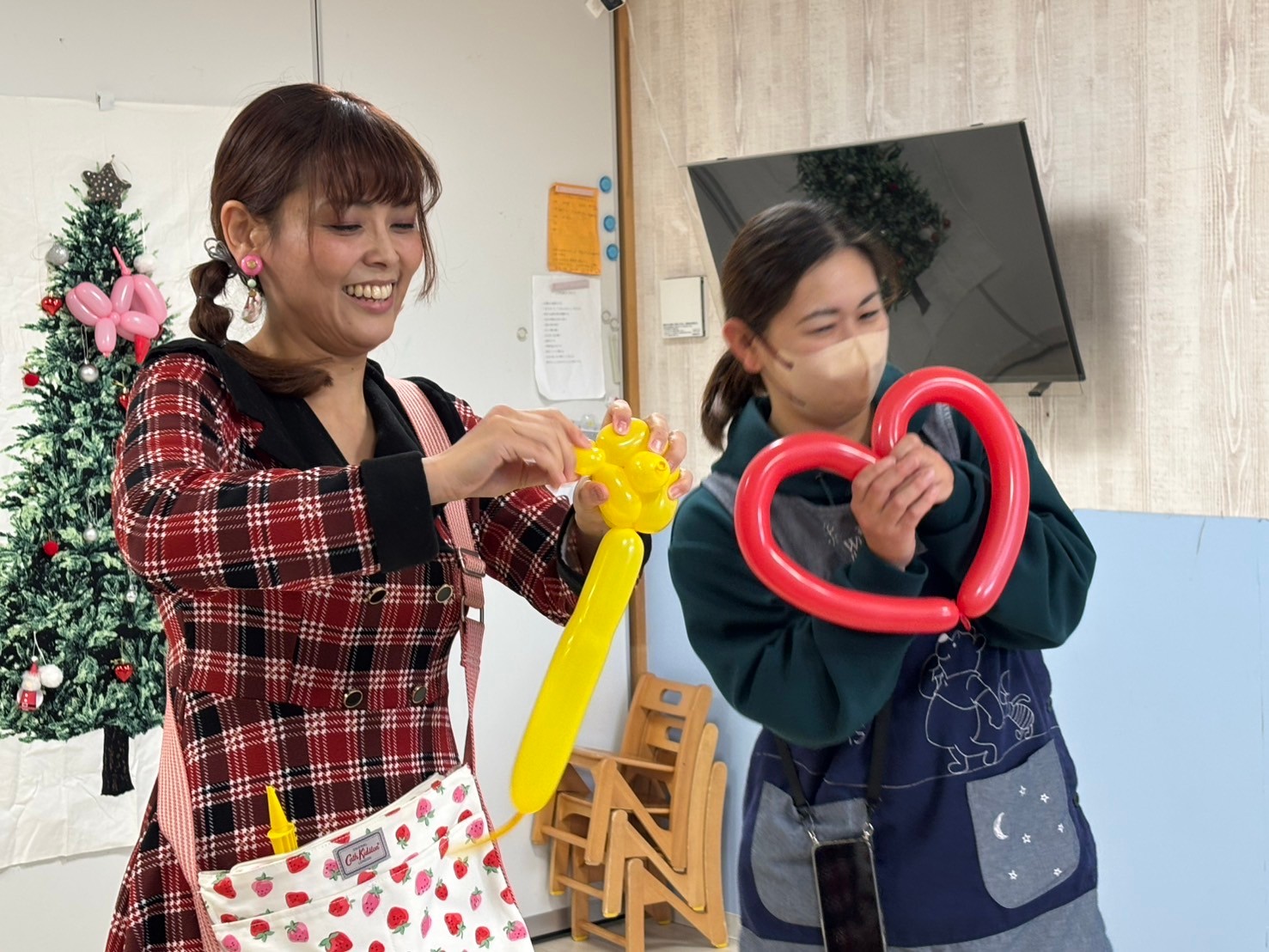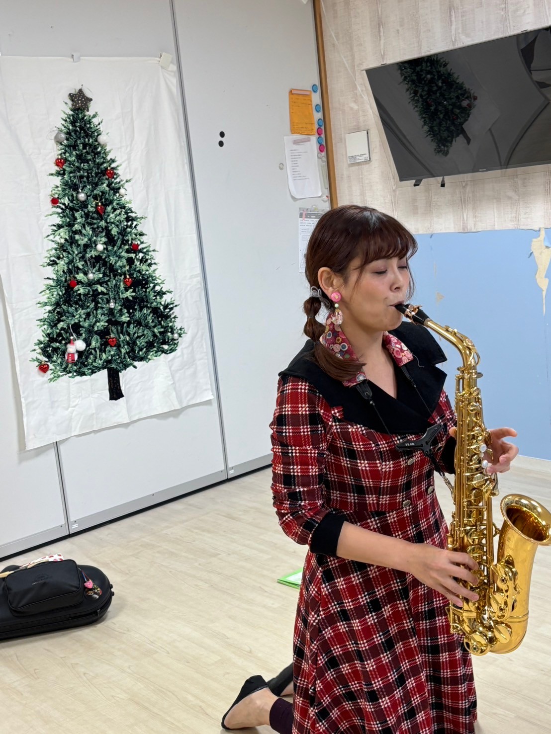 その後はリトミックのまゆみ先生によるクリスマスコンサート♬サックスでクリスマスソングを演奏してくれたり、風船アートを披露してくれたりと楽しいひとときとなりました💓