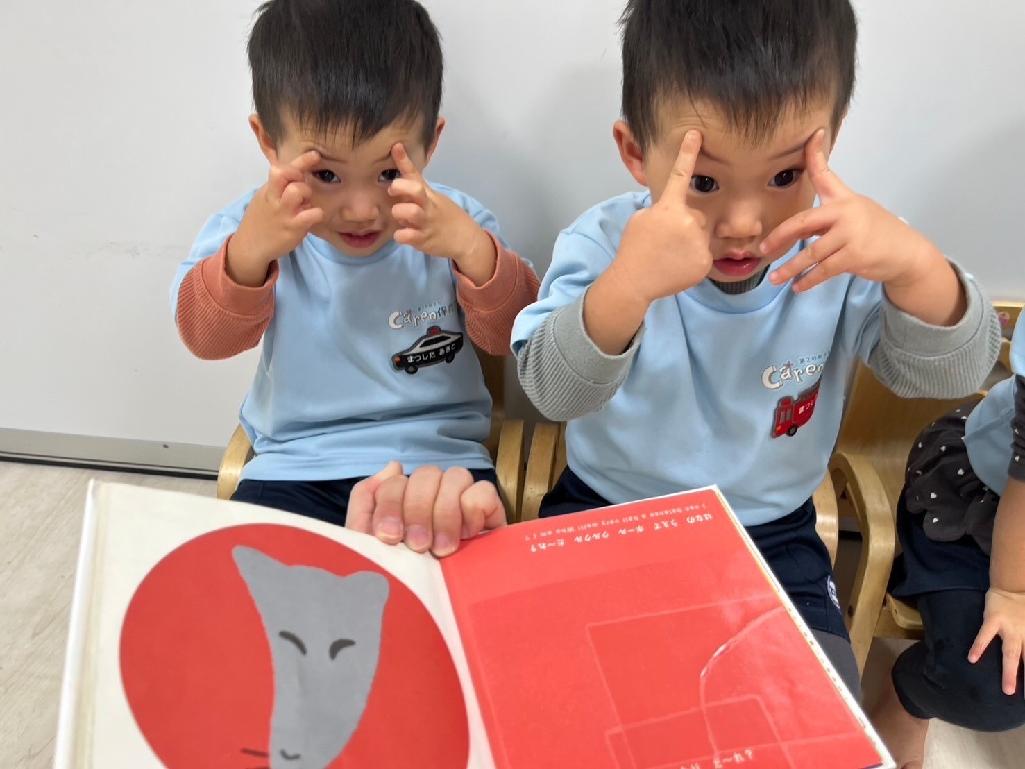 今日も大好きな絵本の読み聞かせから保育がスタート☺️💖先生の掛け声に笑顔で反応しながら楽しむ姿が見られましたよ✨