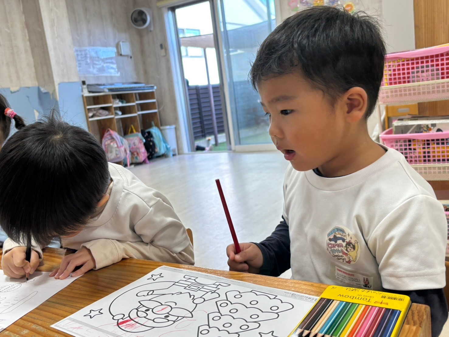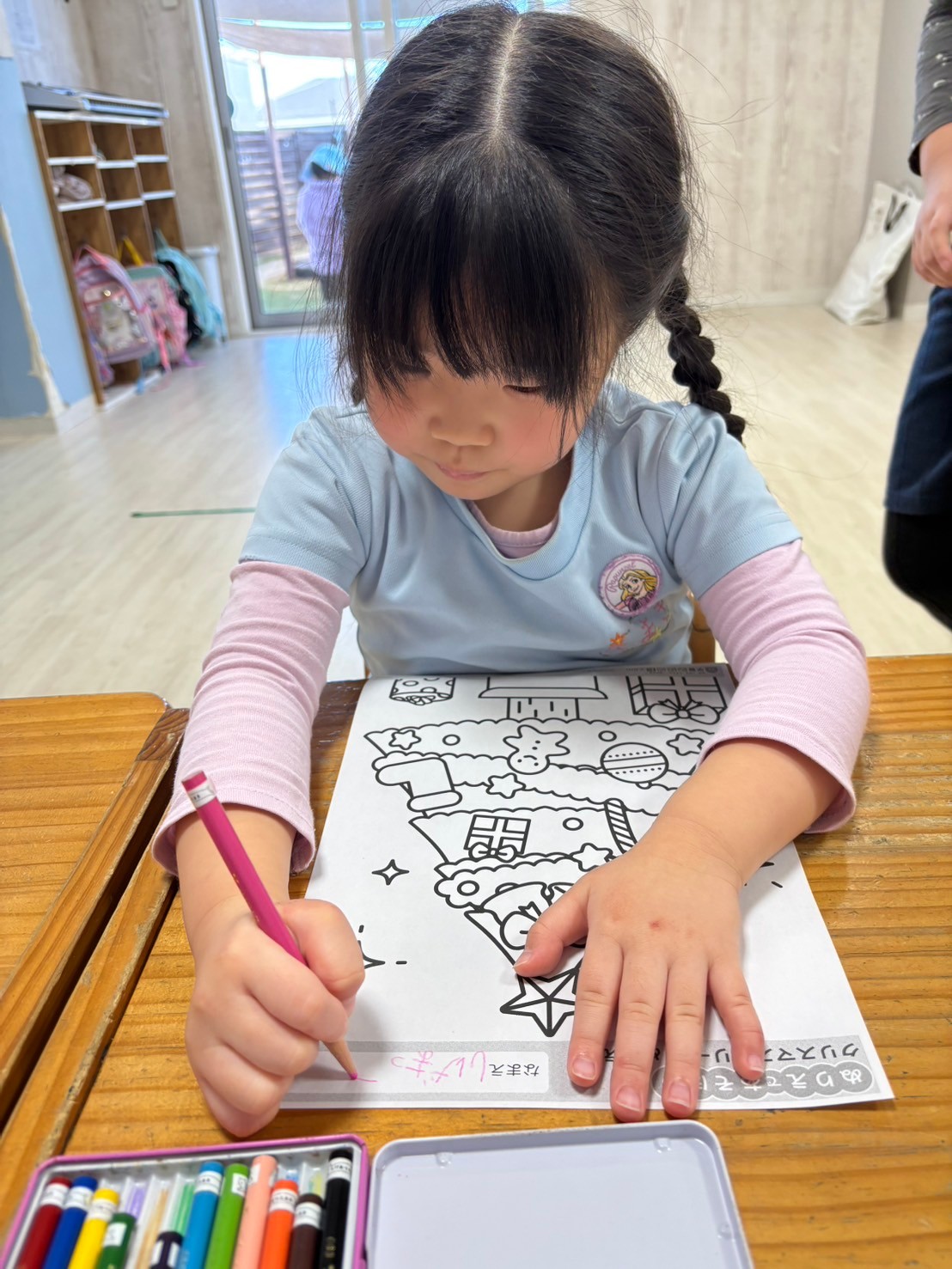 給食までの残りの時間は、塗り絵チームと園庭チームに分かれて遊びました🎵