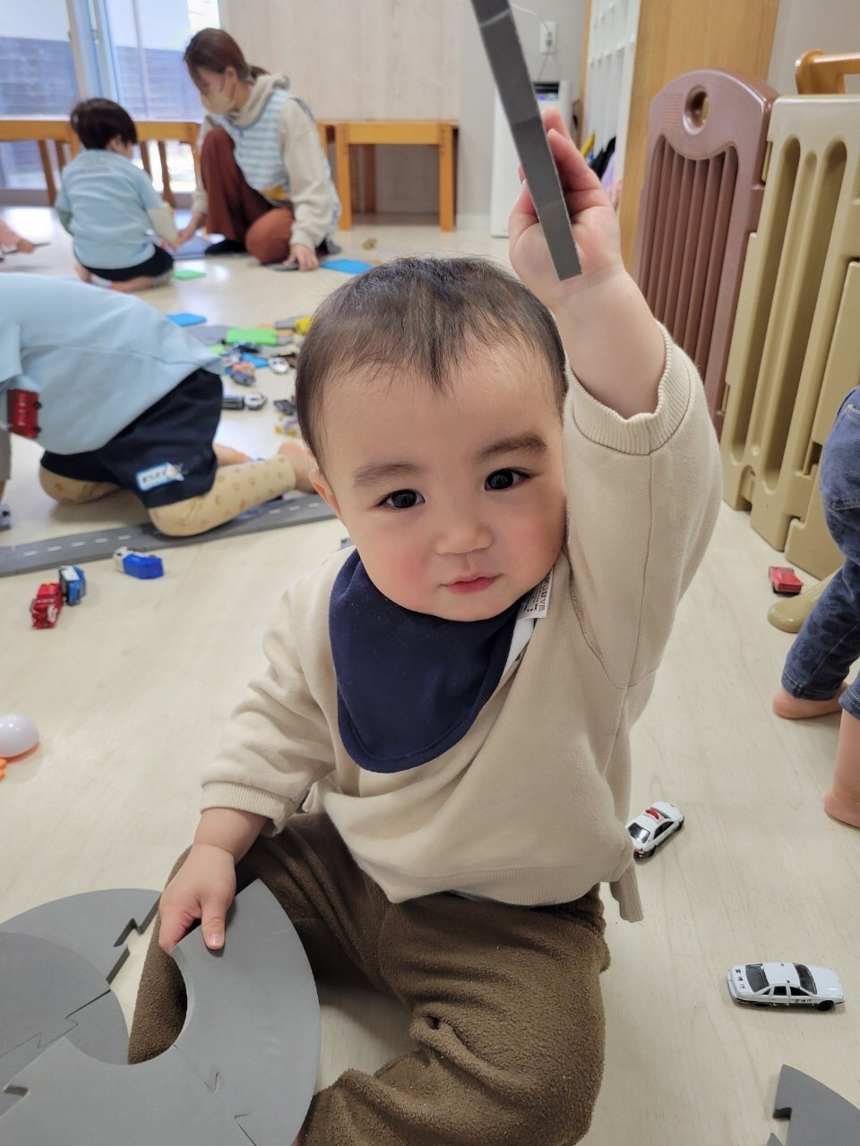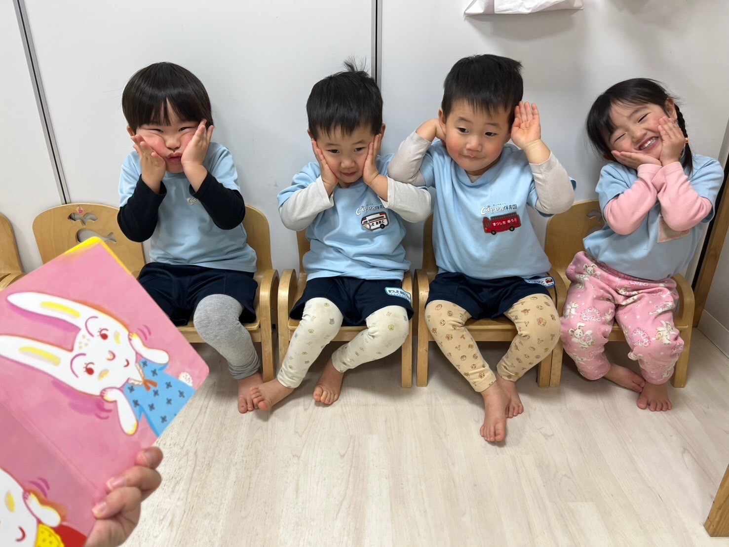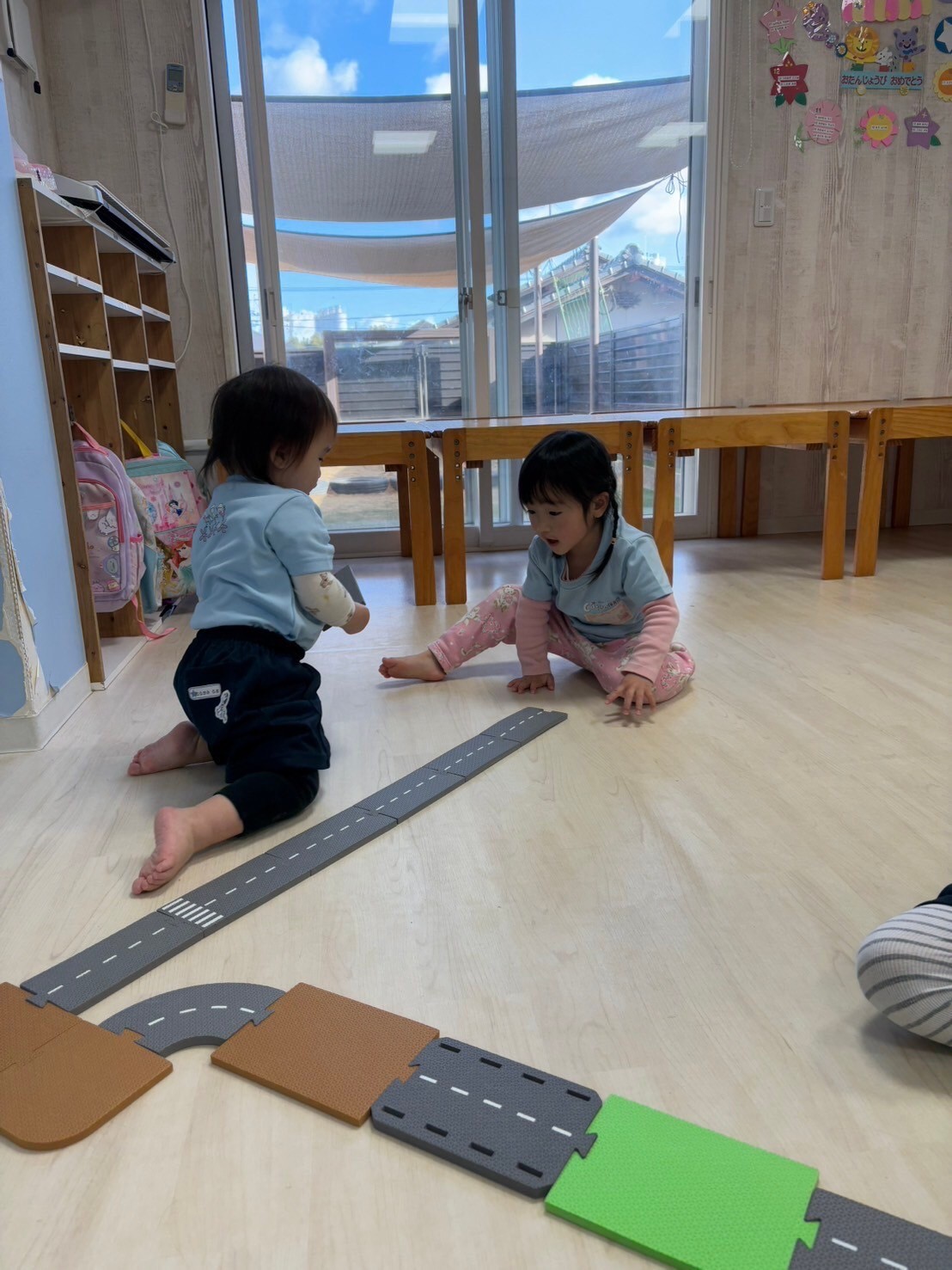 今日は絵本の読み聞かせの後、未満児さんみんなでおっきい組さんのお部屋で広々遊びました❣️