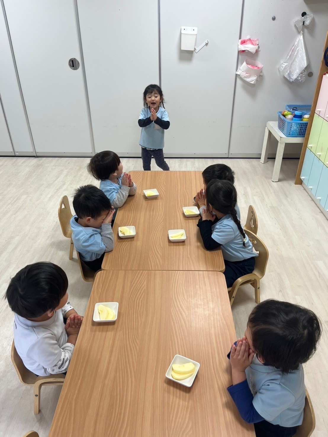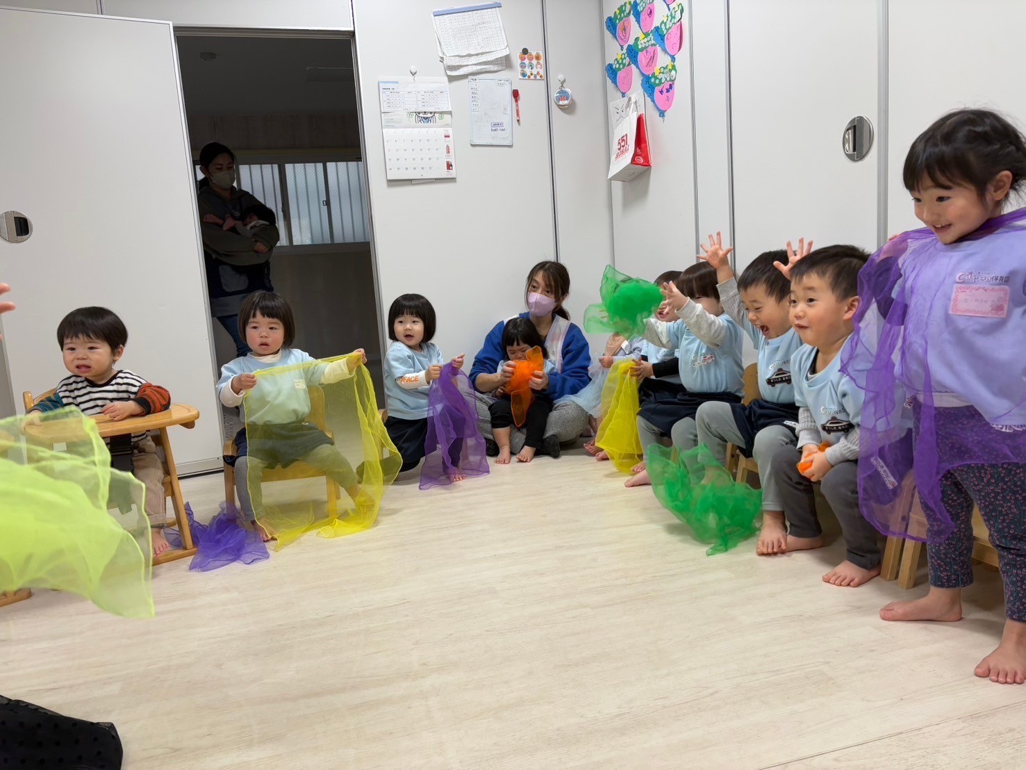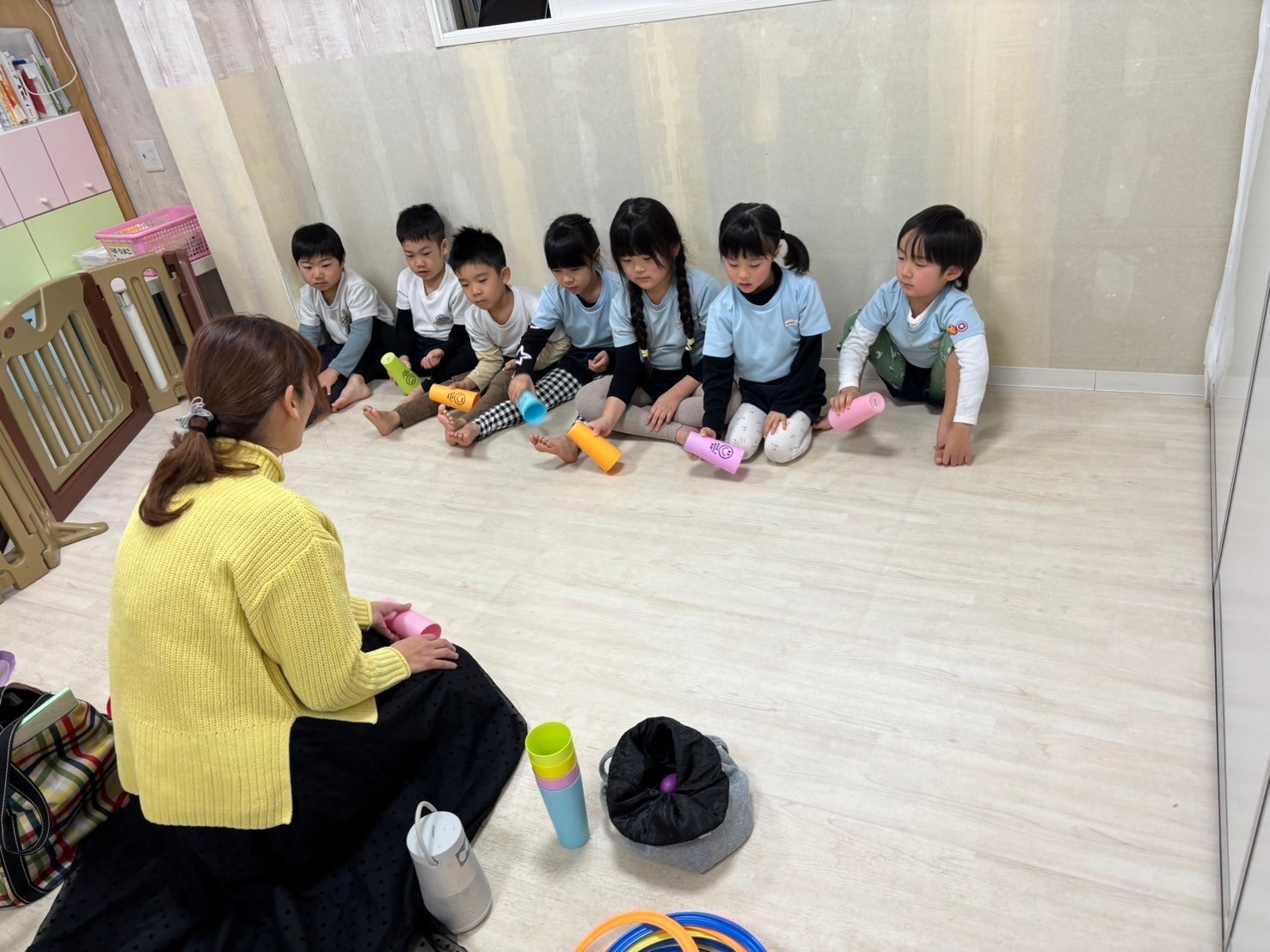 その後は今年初のリトミック🎵リズムに合わせて身体を動かしたり、楽器を叩いたりして楽しく過ごしました💕