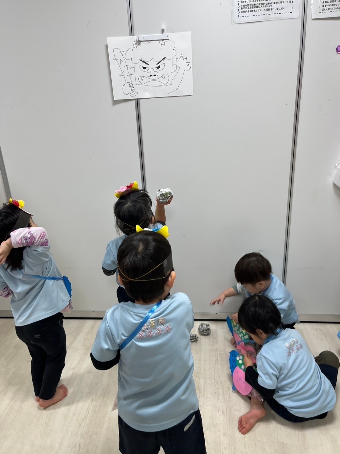 何度もボール投げ遊びをしていたこともあってか、狙って投げるのが上手になっている子が多かったです✨元気に鬼はー外❣️と声を出しながら何度も投げる元気いっぱいの子どもたちでしたよ😁